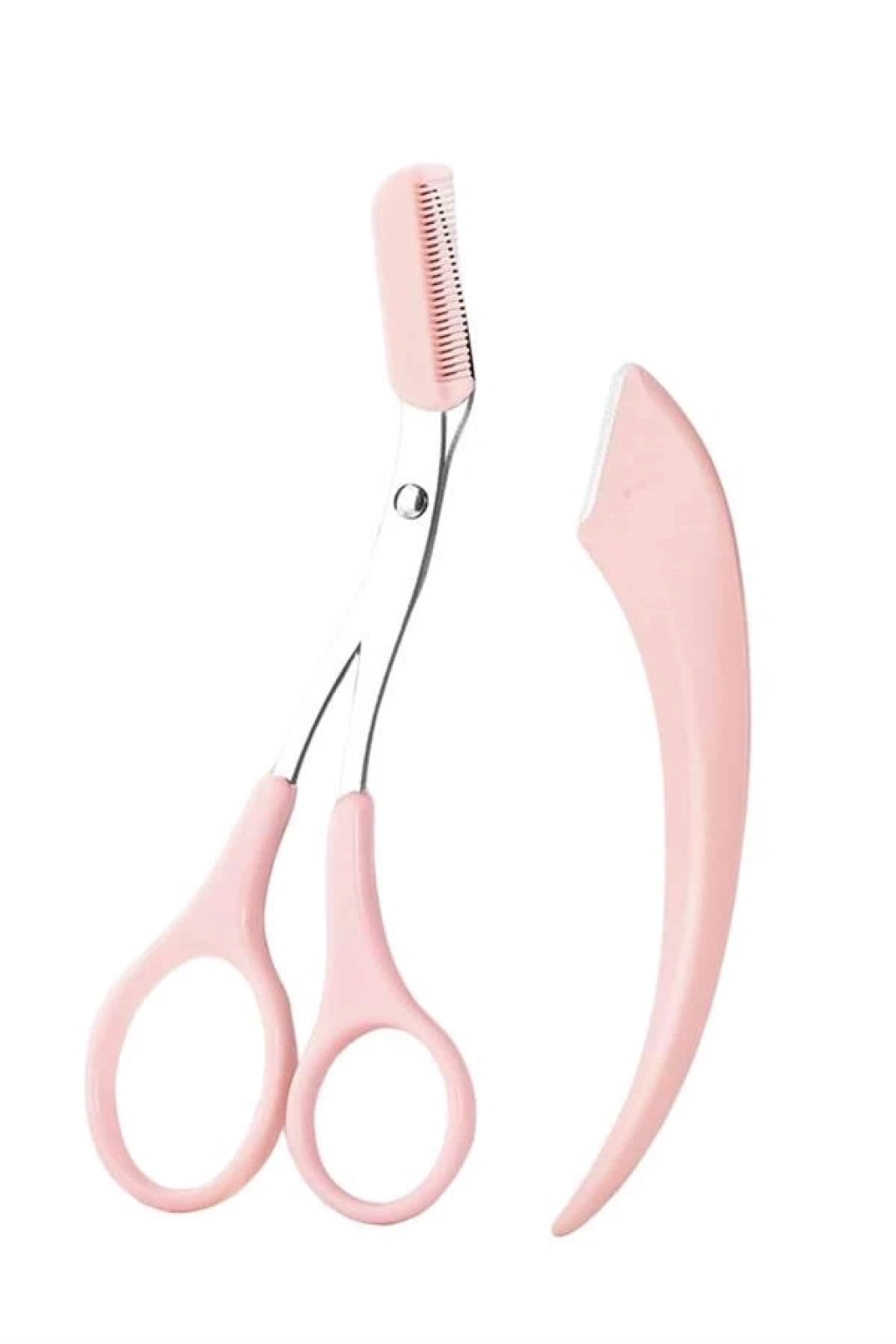 ® 2'li Kaş Bakım Seti Taraklı Kaş Makası Ve Kaş Usturası Kaş Şekillendirici