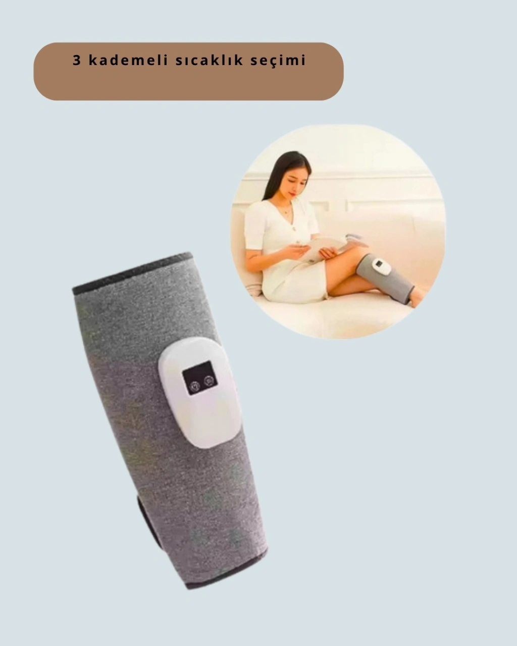 Bacaklarınızdaki yorgunluğu giderin, enerjinizi geri kazanın!Bu gelişmiş baldır masaj aleti, 3 kademeli hava basıncı ve titreşim fonksiyonuyla kas gerginliğini azaltır, kan dolaşımını hızlandırır.Otomatik ısıtma özelliği sayesinde 3 farklı sıcaklık seviyesinden dilediğinizi seçebilirsiniz.Sıcak terapi, kaslardaki sertliği yumuşatır ve daha derin bir rahatlama sağlar.Pnömatik 360° sarma teknolojisiyle baldır çevresini tamamen kavrar.Bu sayede hem ön hem arka kas grupları eşit şekilde masaj etkisi alır.Şarjlı ve kablosuz kullanımı sayesinde kablo karmaşası olmadan özgürce hareket edebilirsiniz.Tek tuşla mod ve yoğunluk ayarı yapılabilir; kolay, güvenli ve pratik bir deneyim sunar.Evde, ofiste ya da seyahatlerde taşınabilir yapısıyla her zaman yanınızda.Bacaklarınıza yeniden canlılık kazandırmak için özel olarak tasarlandı.