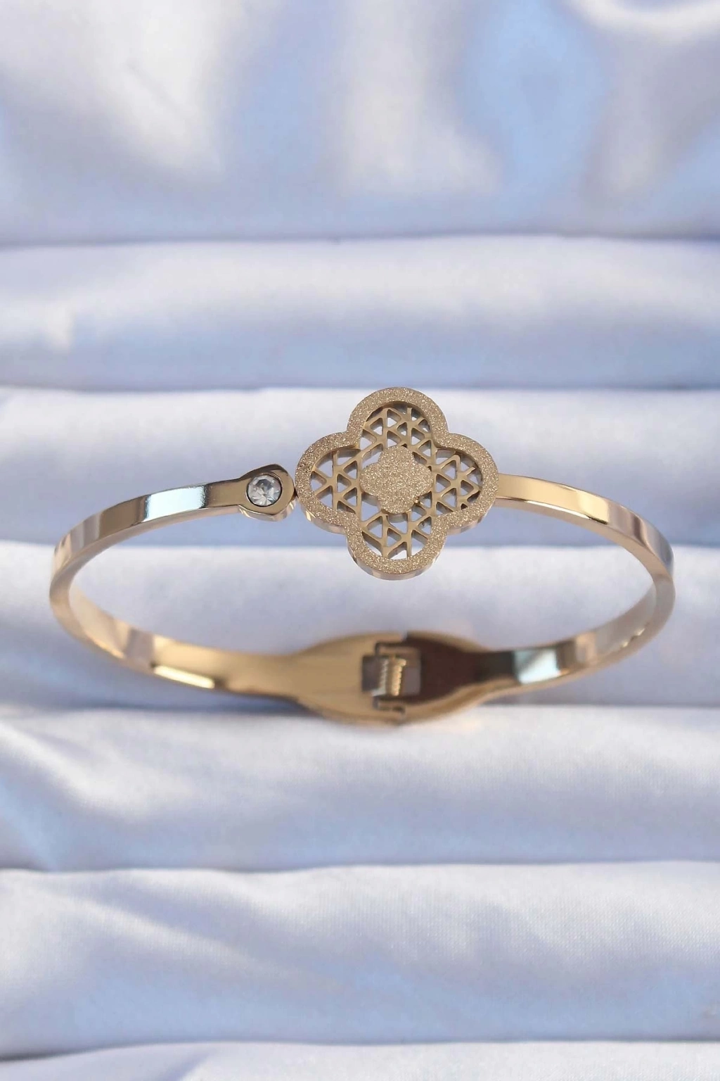 ® 316L Çelik Altın Renk Zirkon Taşlı Simli Yonca Kelepçe