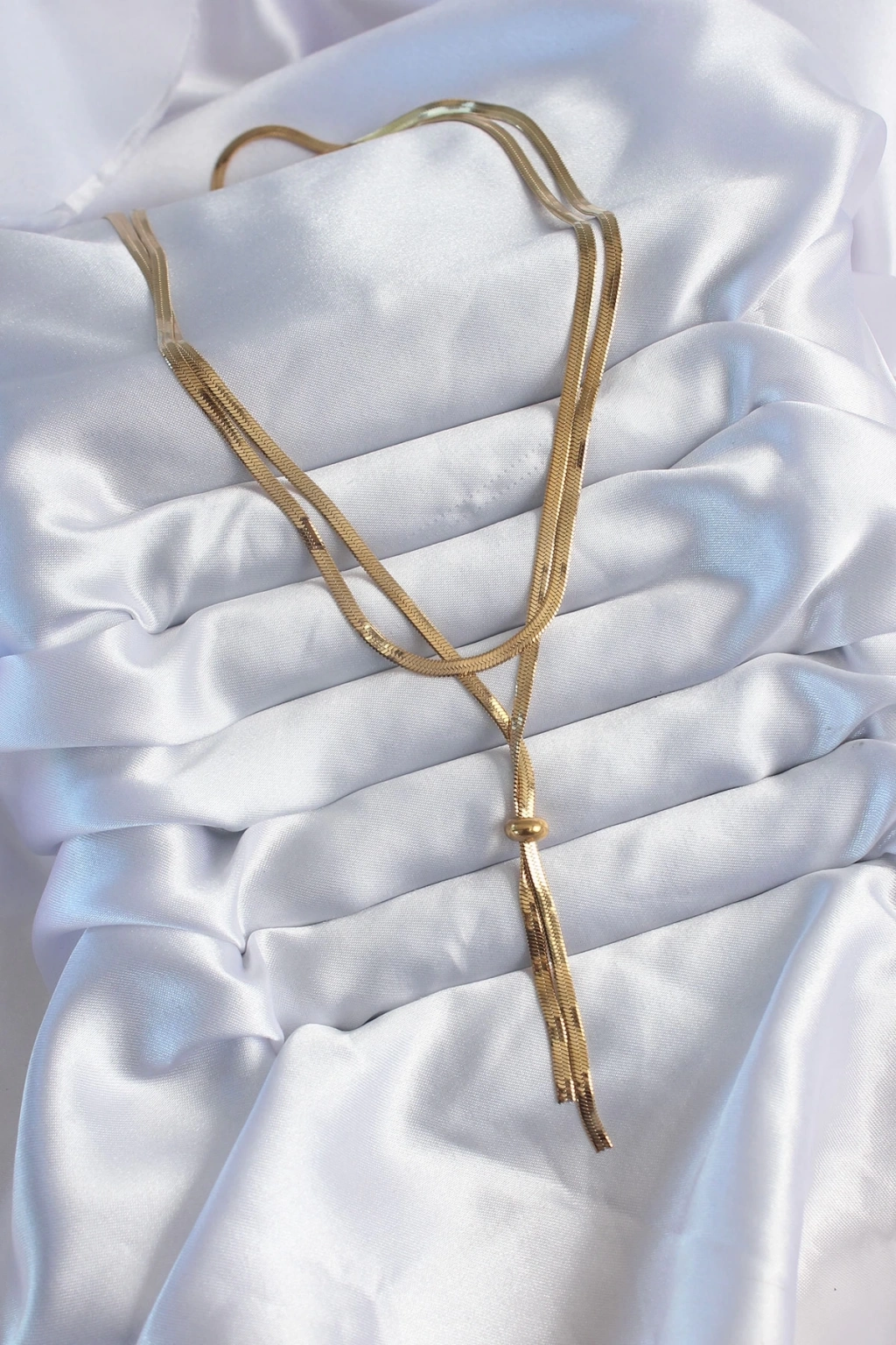 ® 316L Çelik Gold Renk 2'li İtalyan Zincir Asansör Model Sallantı Detay Kadın Kolye