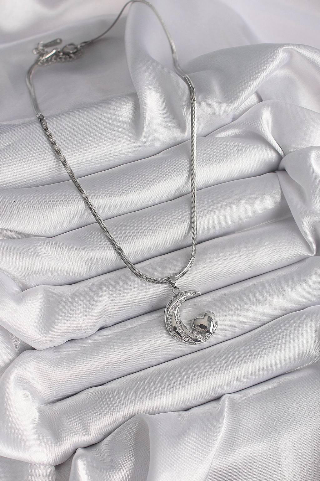 ® 316L Çelik Gümüş Renk İtalyan Zincir Zirkon Taşlı Halil Figür Kalp Detay Kadın Kolye