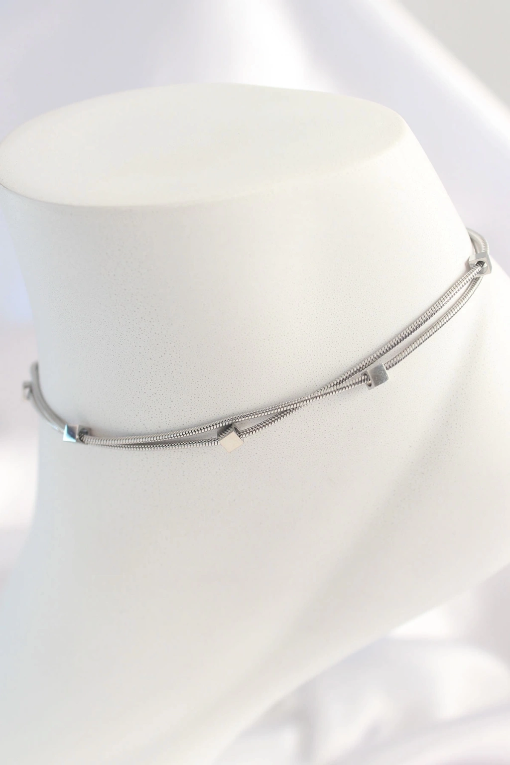 ® 316L Çelik Gümüş Renk Minimal Kare Model Kadın Halhal