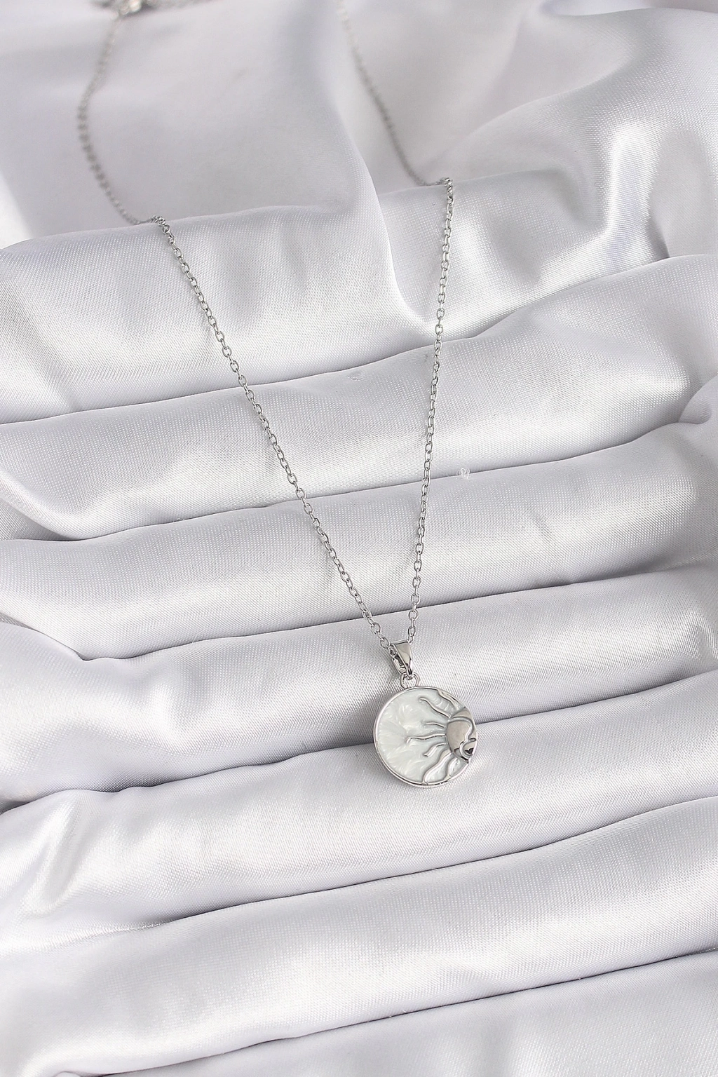 ® 316L Çelik Gümüş Renk Zincir Beyaz Sedefli Gün Batımı Model Kadın Kolye