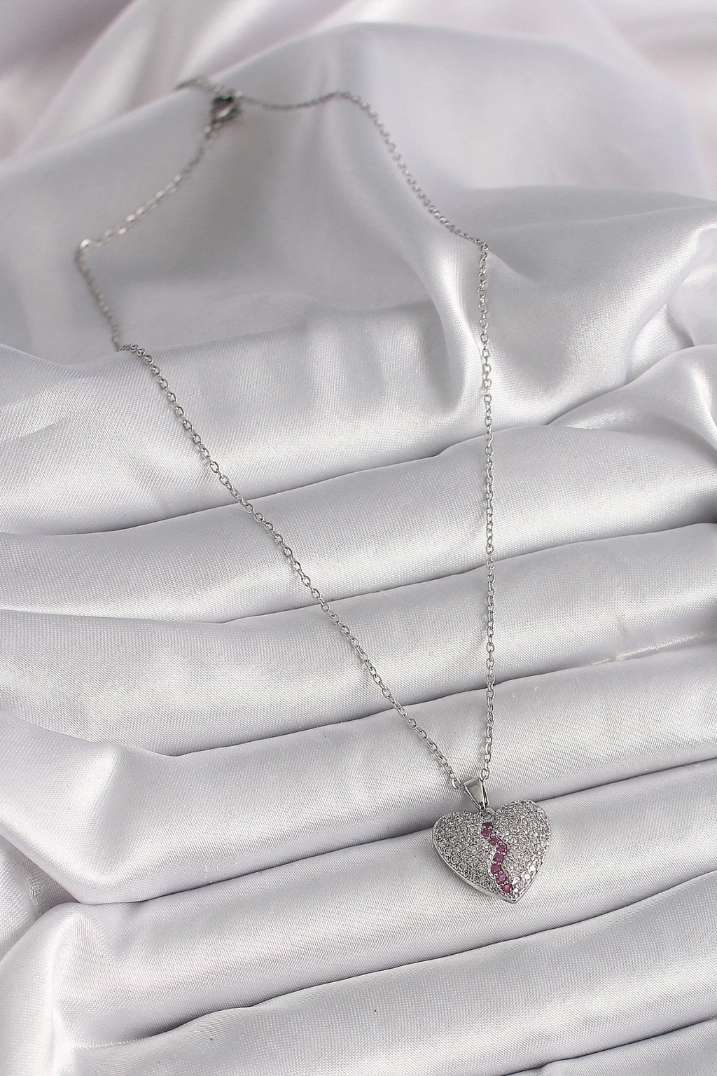 ® 316L Çelik Gümüş Renk Zincir Zirkon Taşlı Kalp Model Kadın Kolye