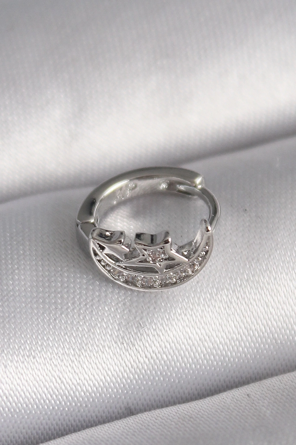 ® 316L Çelik Gümüş Renk Zirkon Taşlı Ay Yıldız Model Tragus Piercing