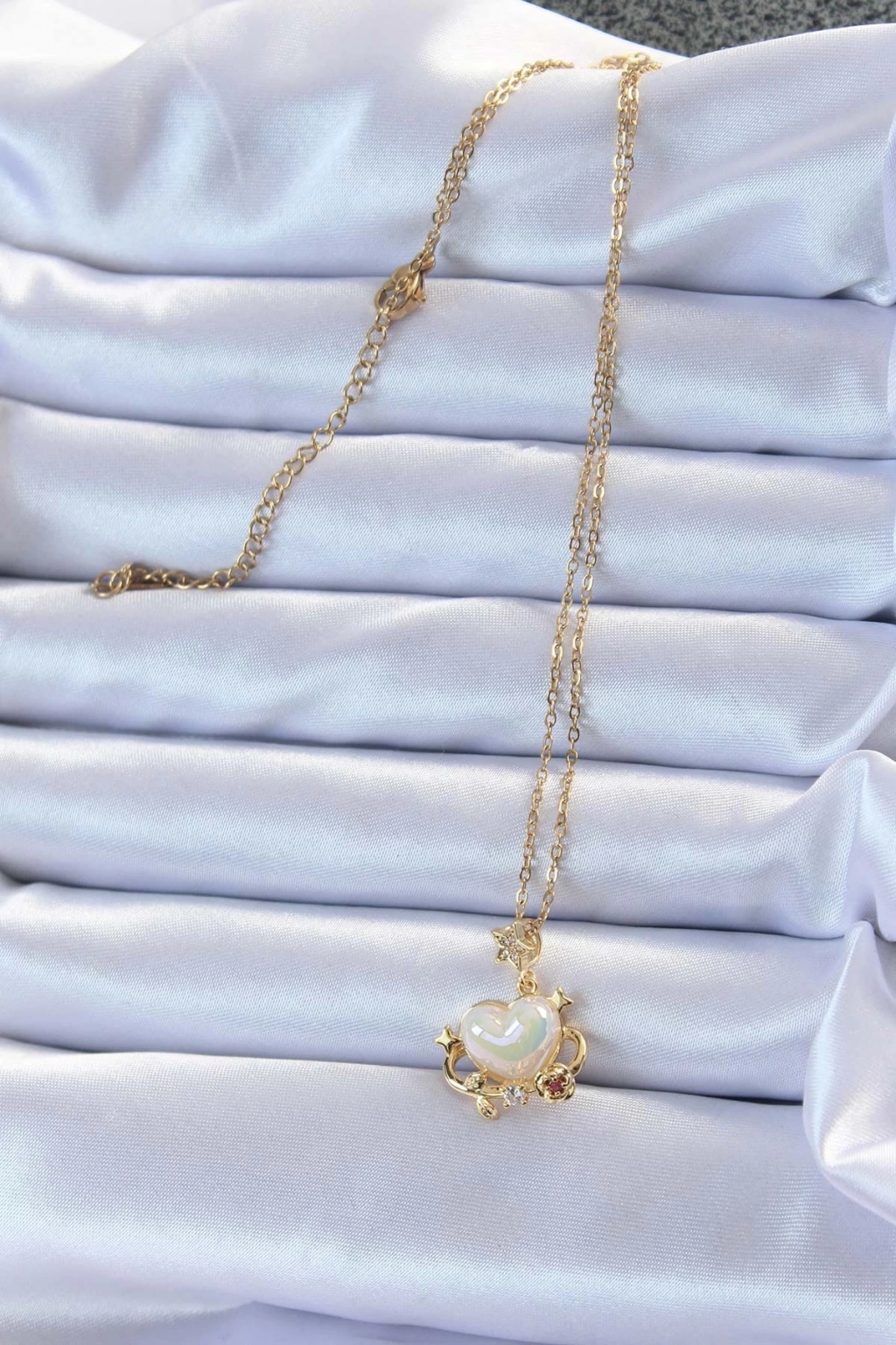 ® 316L Çelik Zincir Altın Renk Zirkon Taşlı Gezegen Görünümlü Kalp Kolye