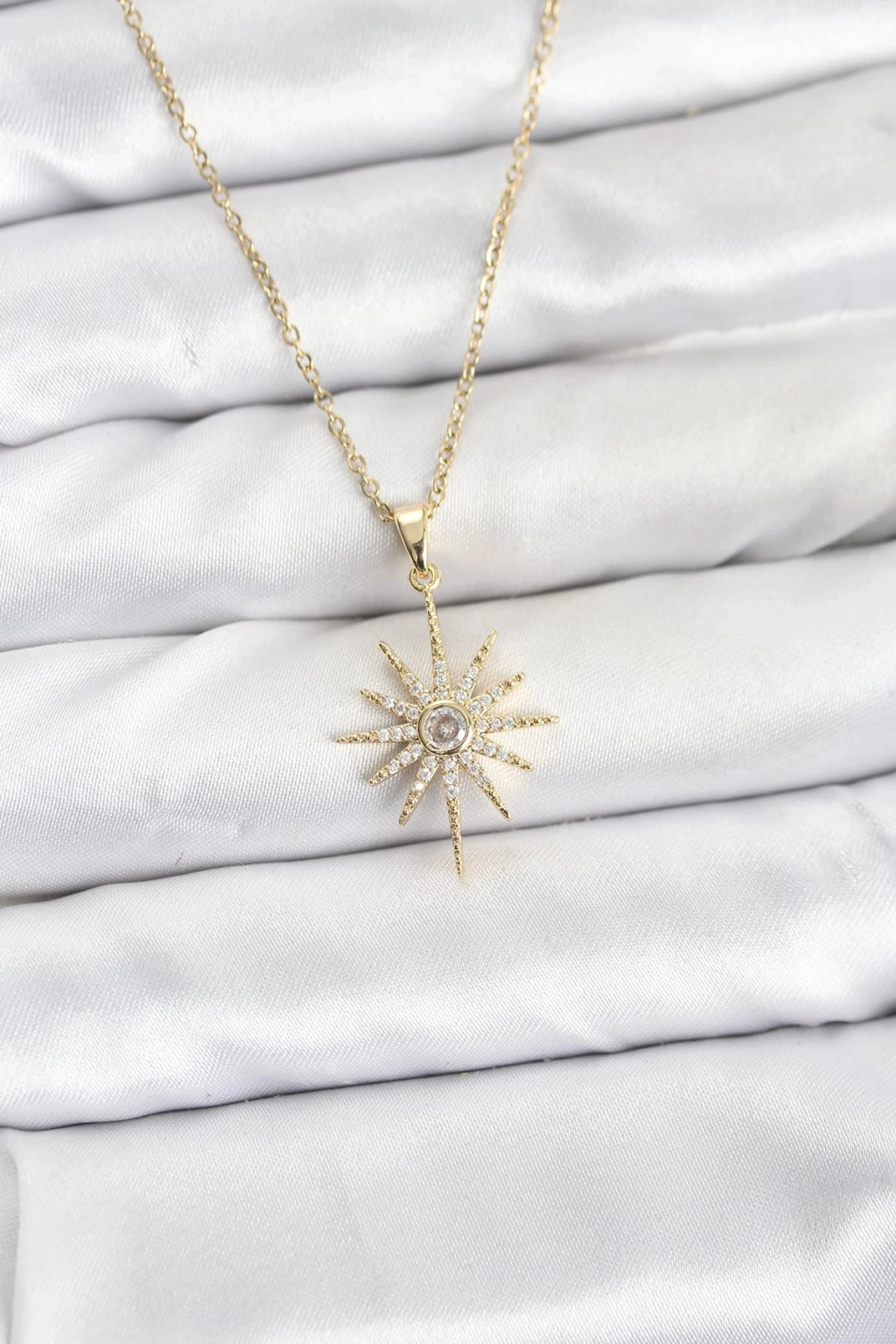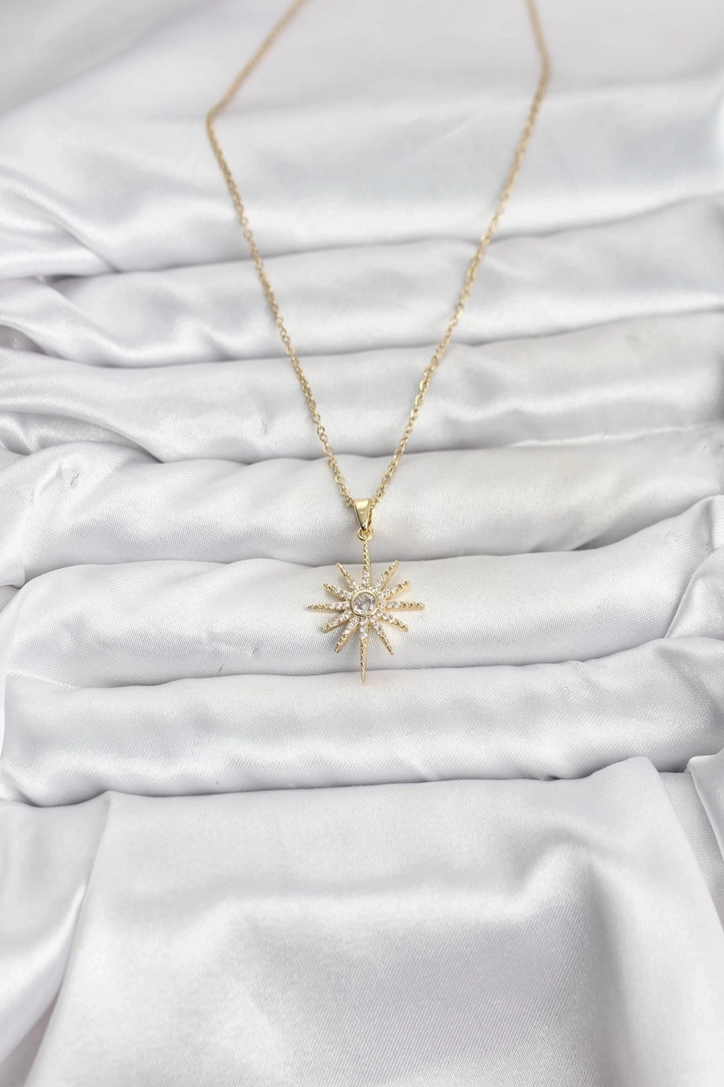 ® 316L Çelik Zincir Gold Renk Kutup Yıldızı Model Zirkon Taşlı Kadın Kolye