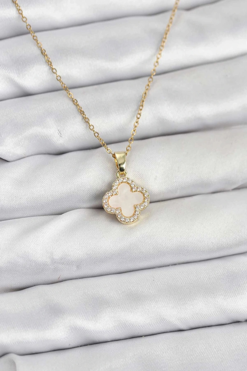 ® 316L Çelik Zincir Gold Renk Sedefli Yonca Kadın Kolye
