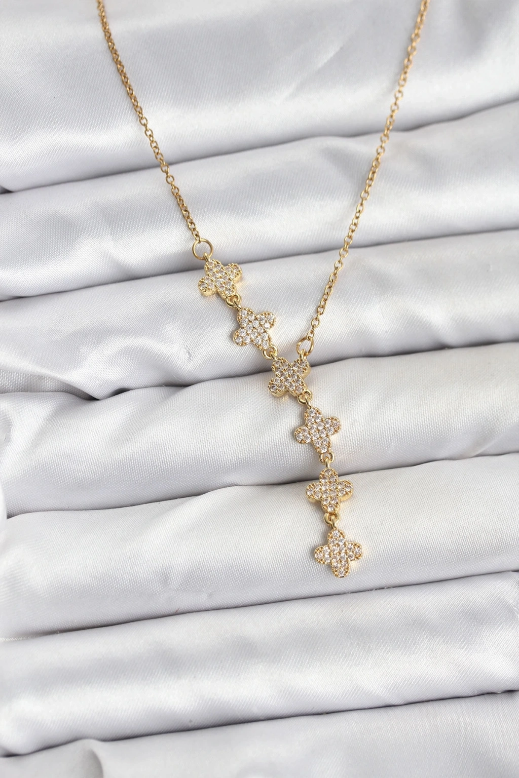 ® 316L Çelik Zincir Gold Renk Yonca Model Kadın Kolye