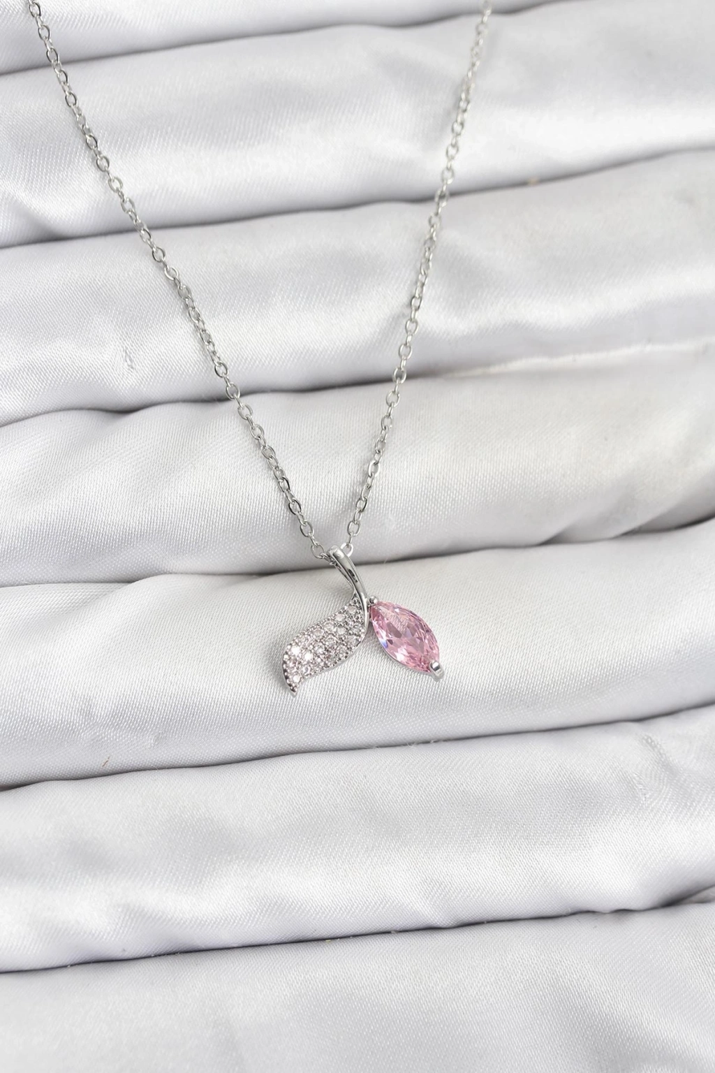 ® 316L Çelik Zincir Gümüş Renk Balık Kuyruğu Model Zirkon Taşlı Kadın Kolye