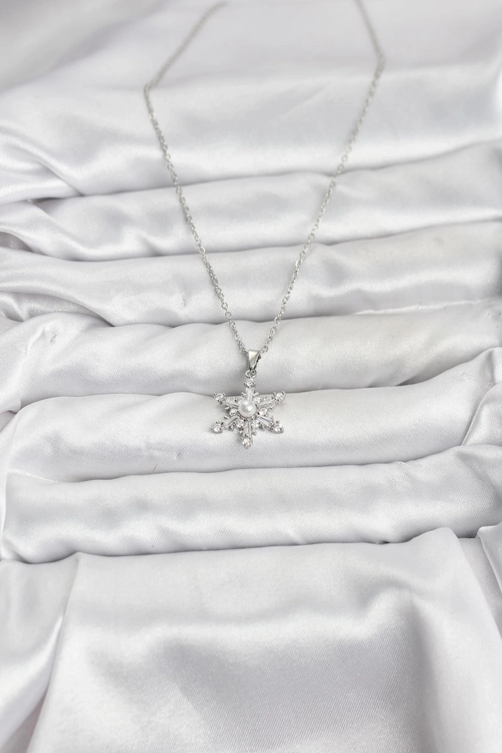 ® 316L Çelik Zincir Gümüş Renk Kar Tanesi Model Zirkon Taşlı Kadın Kolye