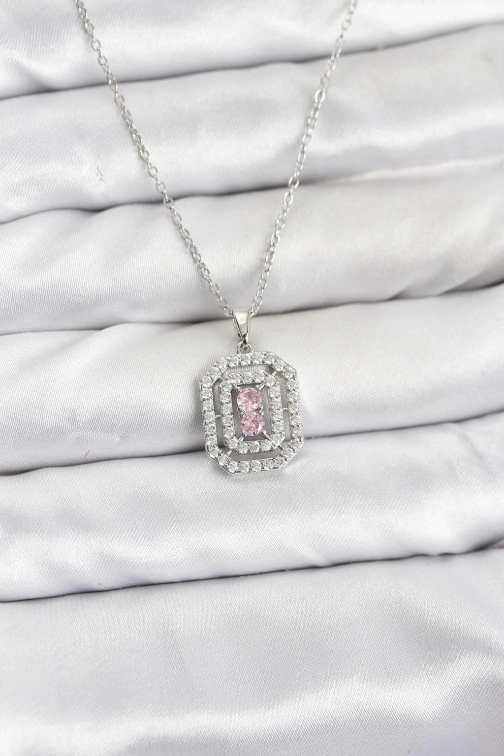 ® 316L Çelik Zincir Gümüş Renk Plaka Model Zirkon Taşlı Kadın Kolye