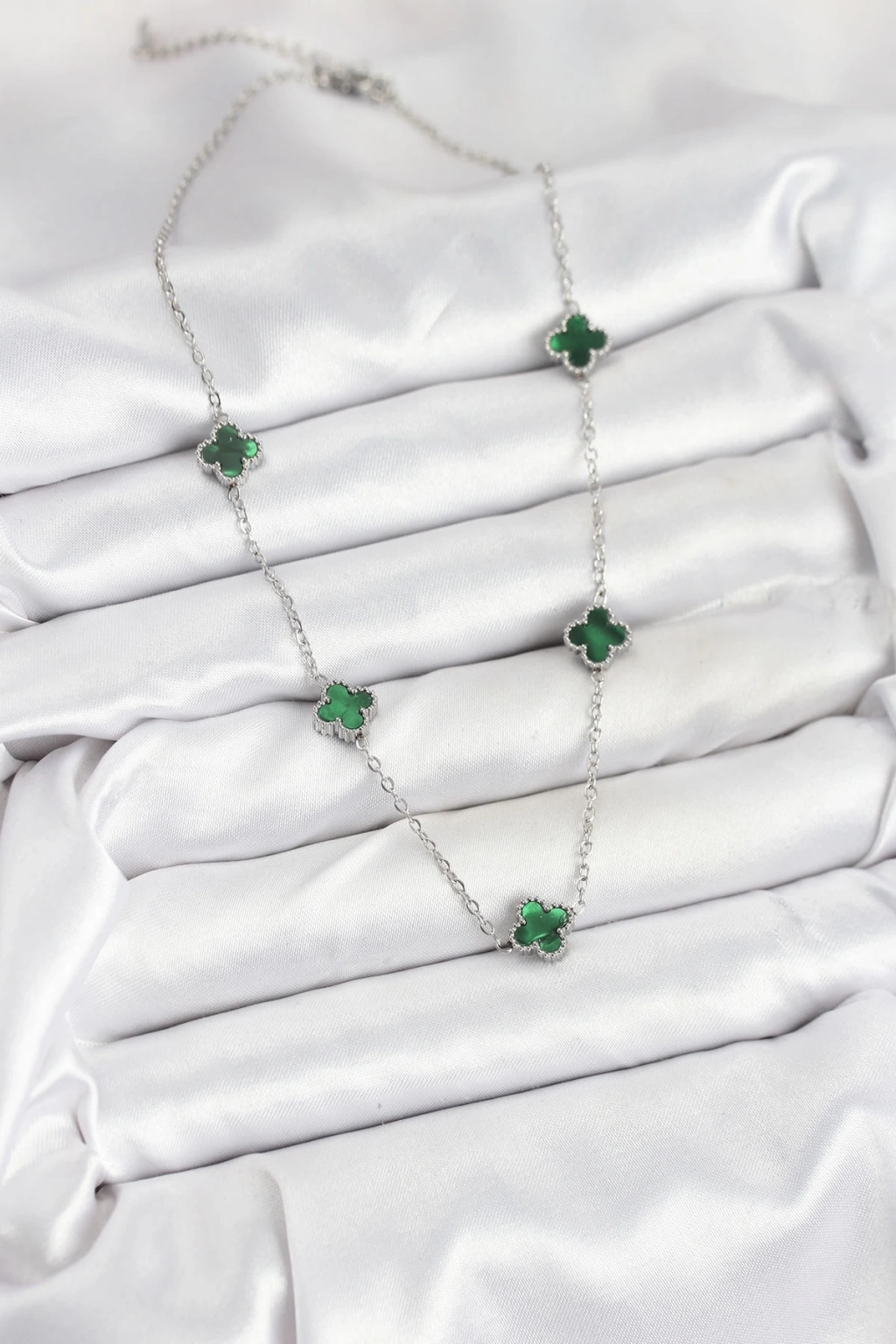 ® 316L Çelik Zincir Gümüş Renk Yeşil Baby Boy Yonca Kadın Kolye