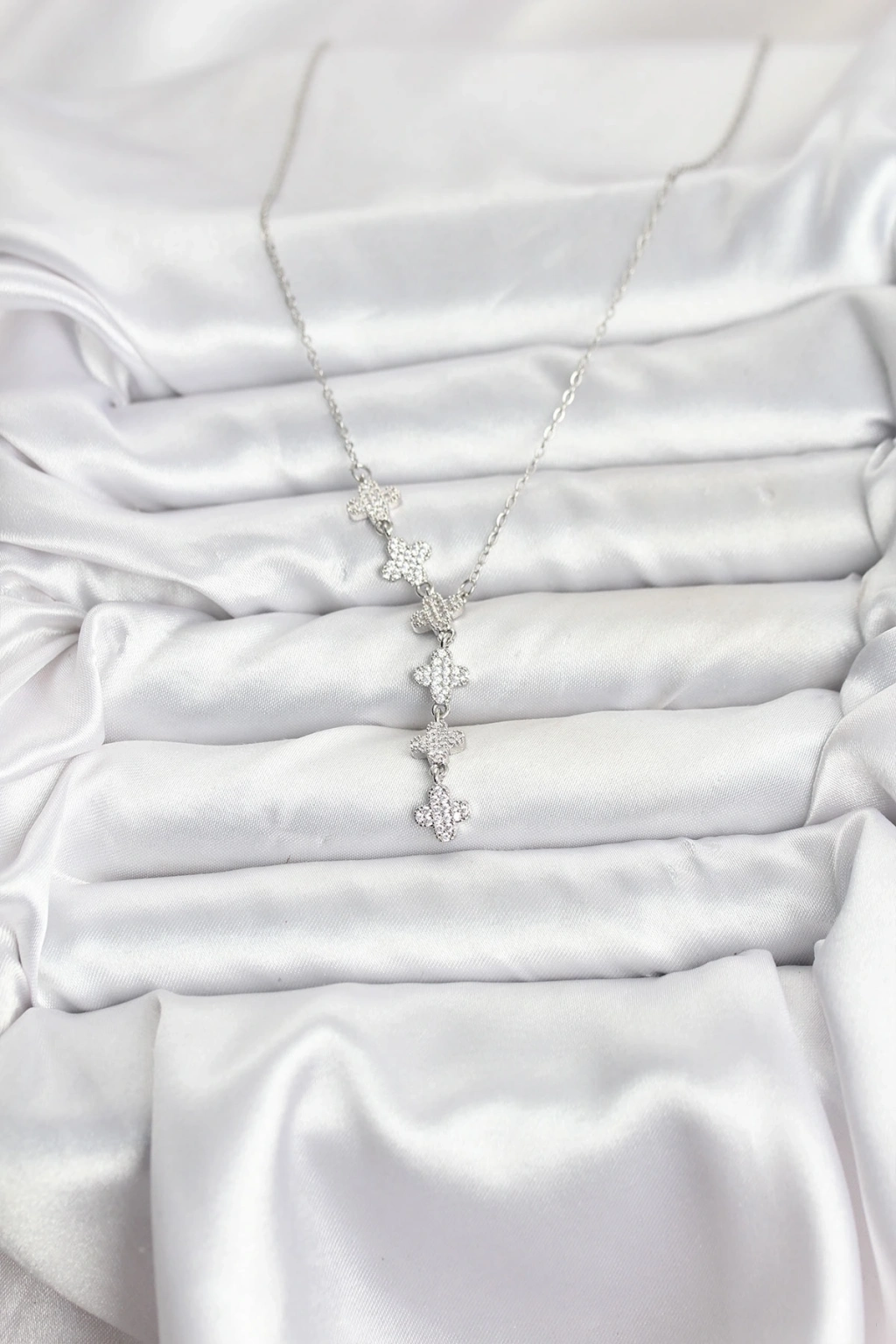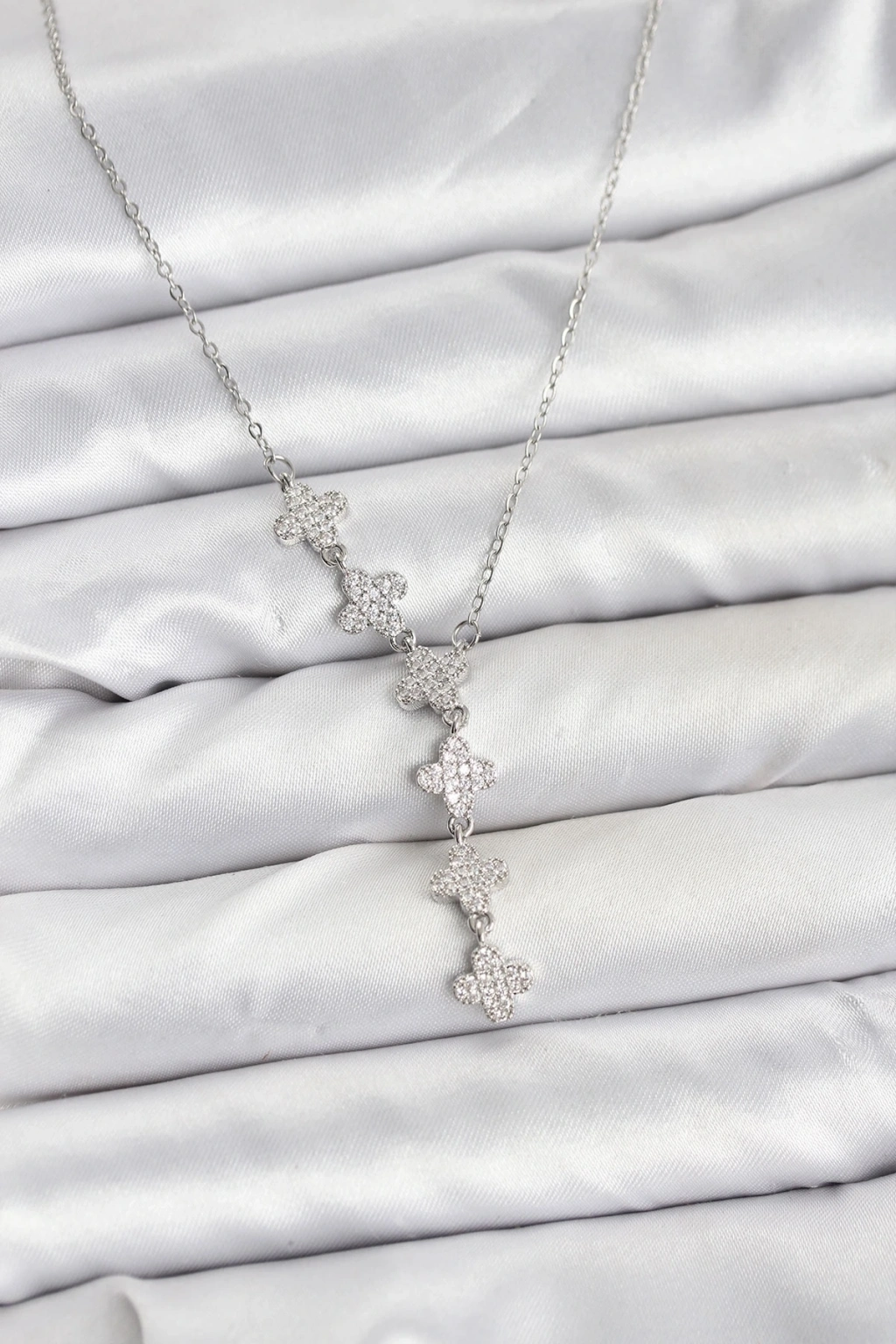 ® 316L Çelik Zincir Gümüş Renk Yonca Model Kadın Kolye