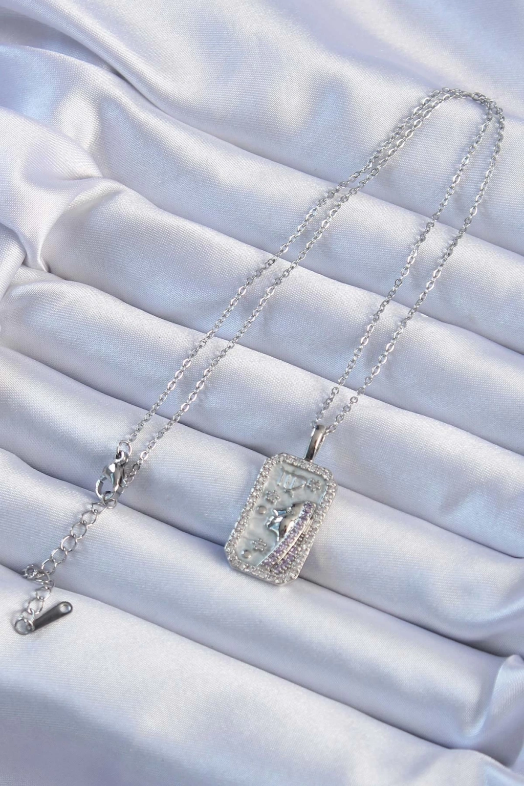 ® 316L Çelik Zincir Gümüş Renk Zirkon Taşlı Yüz Figürlü Tarot Kolye