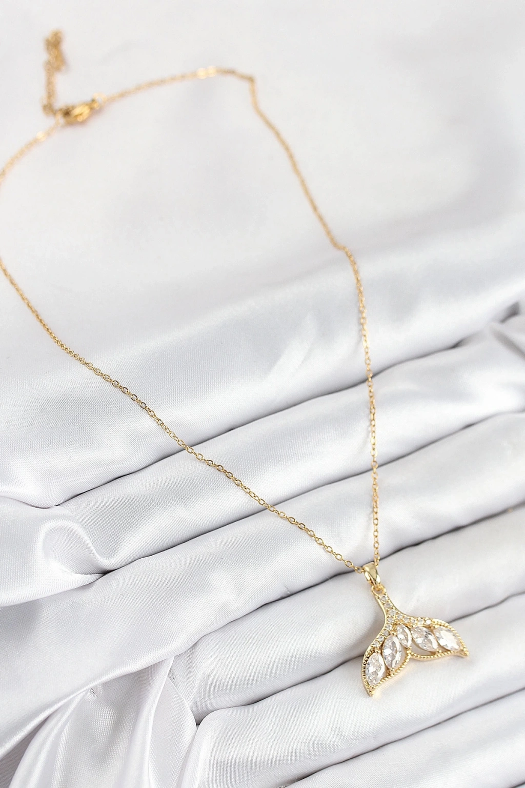 ® 316L Çelik Zirkon Taşlı Balık Kuyruğu Model Gold Renk Kadın Kolye