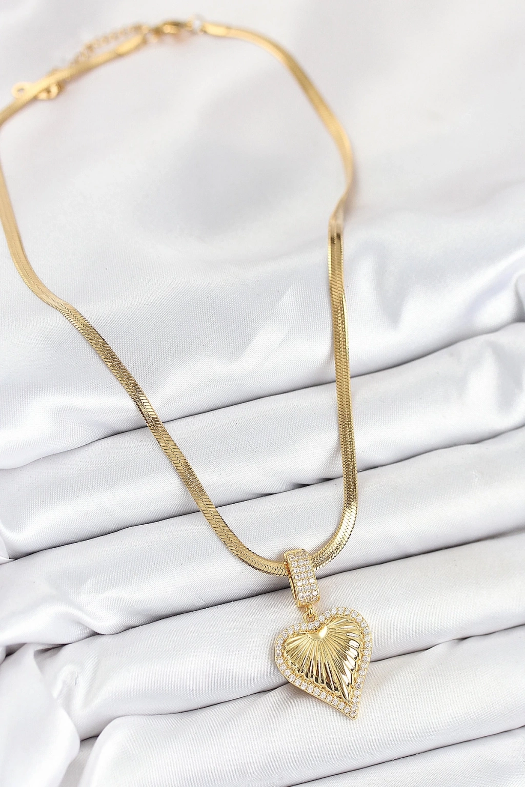 ® 316L Çelik Zirkon Taşlı Kalp Model Gold Renk Kadın Kolye