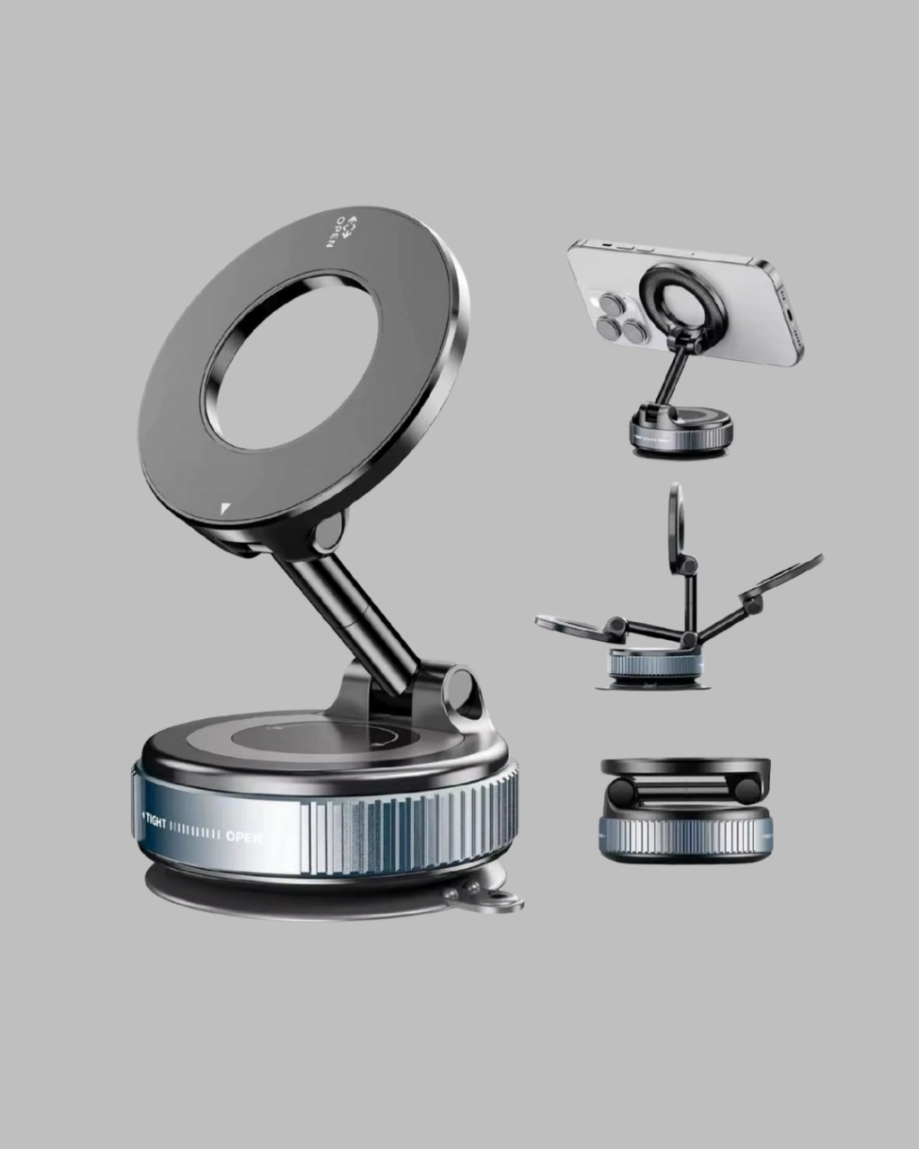 360 derece dönebilen manyetik araç telefon tutucu, sürüş sırasında telefon kullanımını güvenli ve konforlu hale getirir. Güçlü mıknatıs yapısı, cihazın sabit kalmasını sağlar ve titreşim kaynaklı hareketleri minimuma indirir. Bu özellik, özellikle bozuk zeminlerde ve uzun yolculuklarda büyük avantaj sağlar.Vakum emme sistemi, güçlü tutuş sağlayarak ürünü aracın camına veya ön paneline güvenle sabitler. Çift taraflı yapışma özelliği sayesinde montaj esnekliği sunar. Kullanıcı, ihtiyacına göre konumlandırma yapabilir.360 derece ayarlanabilir mekanizma, telefonunuzu ideal açıya getirmenizi sağlar. Navigasyon kullanımında göz hizasında görüntü elde edebilir, sürüş güvenliğini artırabilirsiniz. Dikey ve yatay kullanım seçenekleri, kullanım alışkanlıklarına uyum sağlar.Dayanıklı alüminyum alaşım gövde, uzun ömürlü kullanım sunar. Silikon kaplı temas noktaları, telefonun çizilmesini önler ve kaymaz bir yüzey oluşturur. Hafif yapısı sayesinde araç içinde ağırlık oluşturmaz.Geniş uyumluluğu sayesinde 4.7 inç ve üzeri tüm akıllı telefonlarla kullanılabilir. Kablosuz şarj destekli kılıflarla uyumlu olması, ürünü daha kullanışlı hale getirir.