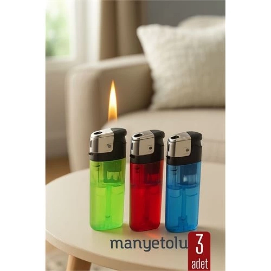 ® 3’lü Manyetolu Çakmak Seti – Renkli Şeffaf Gövde | Güvenli ve Uzun Ömürlü Kullanım