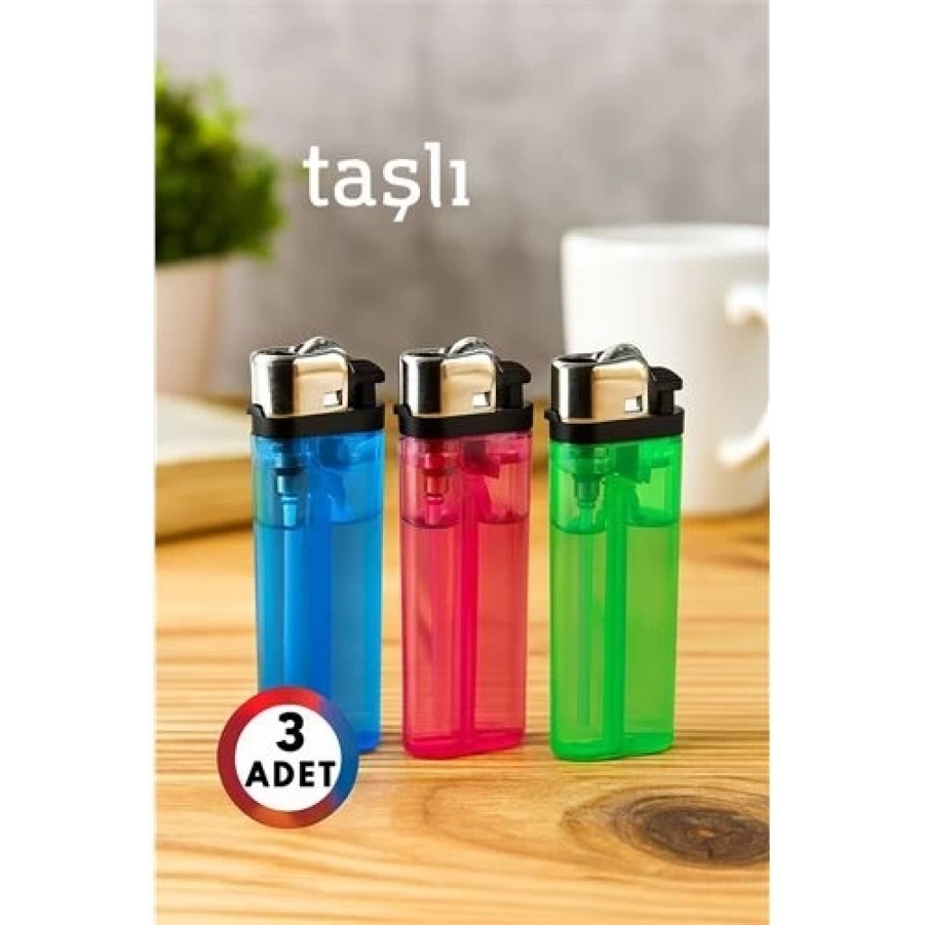 Bu 3’lü taşlı çakmak seti; mavi, pembe ve yeşil renkleriyle hem estetik hem işlevsel bir kullanım sunar.