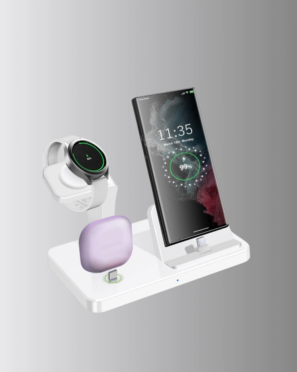 Tüm Apple cihazlarınızı tek platformda şarj edin!Kablosuz Şarj İstasyonu, hem pratik hem de estetik tasarımıyla masaüstü düzenini sadeleştirir.iPhone 8’den 13 Pro Max’e, Apple Watch serilerine ve AirPods Pro’ya kadar geniş uyumluluk sunar.Tek bir kabloyla dört cihazı aynı anda şarj edebilme özelliği sayesinde fazla priz derdine son verir.Her cihaz için özel yerleşim alanı sayesinde karışıklık olmadan düzenli bir şarj ortamı sağlar.Güçlü kablosuz aktarım sistemi, şarj hızını artırırken pil sağlığını da korur.Mat dokulu dış yüzey, modern Apple estetiğini tamamlar.Kompakt ve taşınabilir yapısı sayesinde evde, ofiste veya seyahatte kullanım için uygundur.Kablo karmaşasından kurtulmak, düzenli ve güvenli bir şarj deneyimi yaşamak isteyenler için mükemmel bir tercihtir.