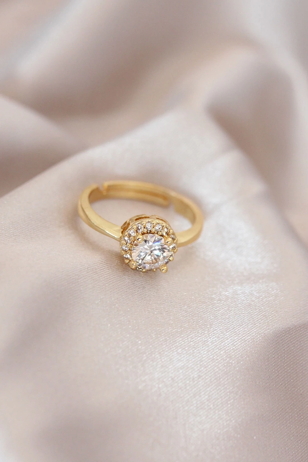 ® Ayarlamalı Altın Renk Metal Zirkon ve Kristal Taşlı Oval Model Yüzük