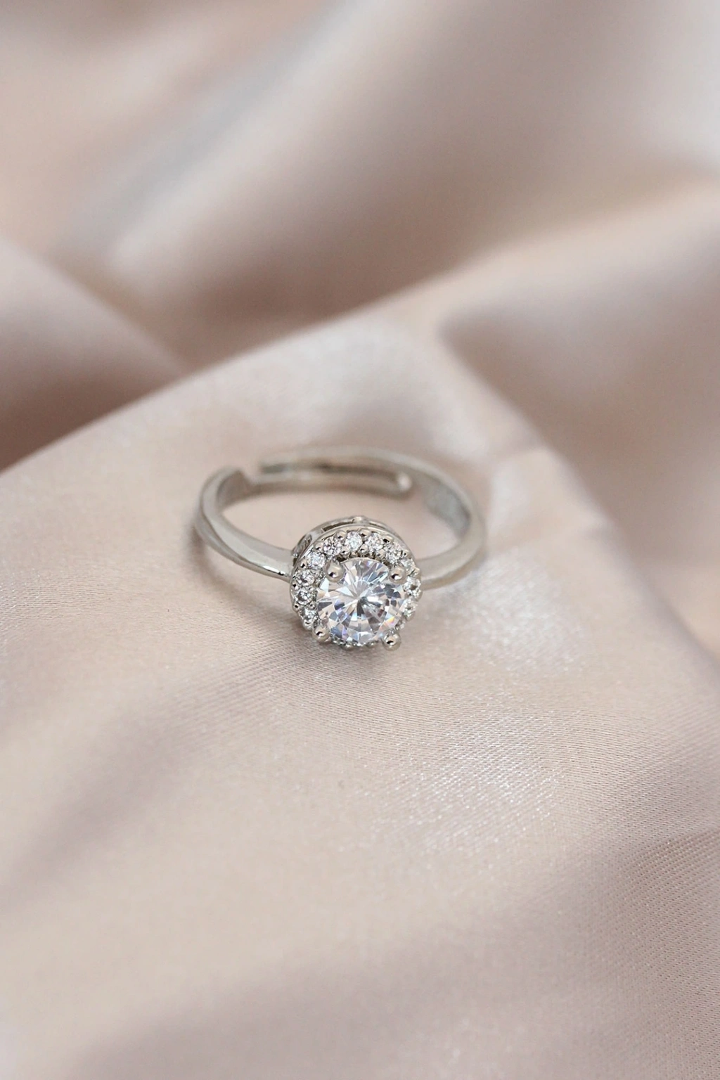 ® Ayarlamalı Gümüş Renk Metal Zirkon ve Kristal Taşlı Oval Model Yüzük