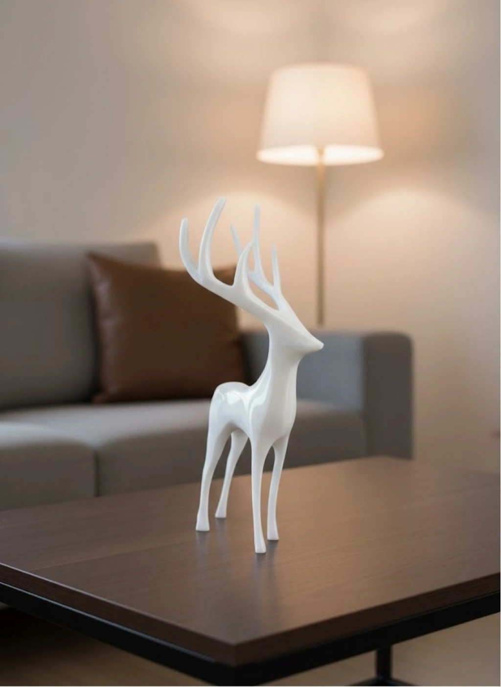 ® Beyaz Dekoratif Geyik Figürü Şık Ev Aksesuarı