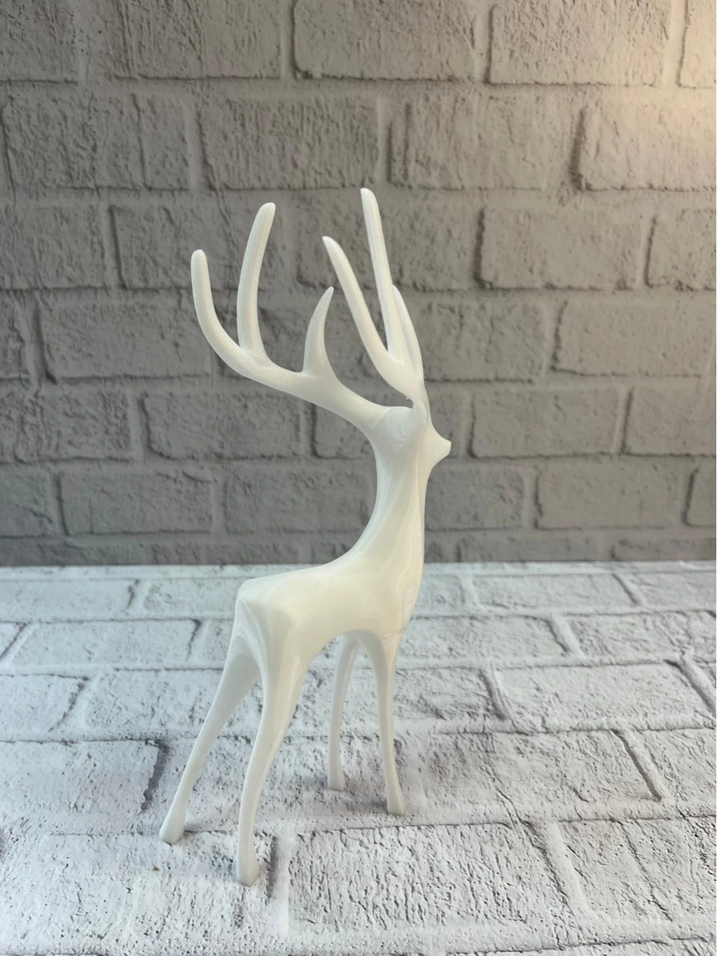 Dekoratif beyaz geyik figürü, şıklığı ve sadeliği bir araya getiren zamansız bir tasarıma sahiptir. Uzun formu sayesinde raflarda ve masa üstlerinde estetik bir duruş sergiler. Ev dekorasyonunda doğal, modern veya İskandinav tarzı sevenler için ideal bir aksesuardır. Tek başına güçlü bir vurgu oluşturur, diğer dekoratif objelerle birlikte kullanıldığında bütünlüklü bir görünüm sağlar.
