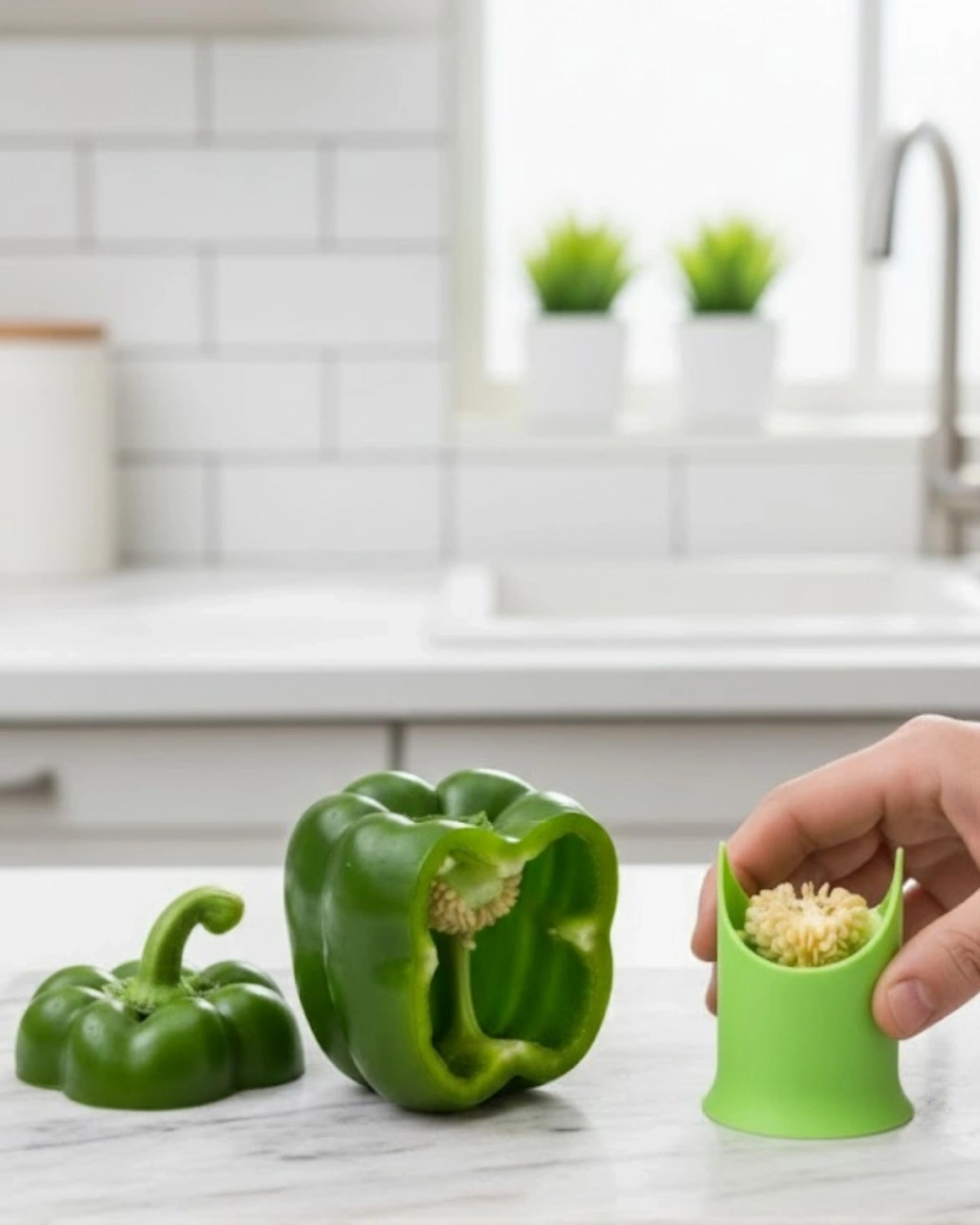Pratik sebze oyucu aparat, biber ve kabak gibi sebzelerin içini kolayca temizlemek için tasarlanmıştır. Çekirdek ve iç lifleri tek parça halinde çıkararak dolma ve pişirme işlemlerini hızlandırır. Dağınıklık yaratmadan çalışır ve mutfakta temiz bir hazırlık alanı sağlar. Esnek silikon yapısı güvenli kullanım sunar ve sebzeye zarar vermez. Günlük mutfak işlerinde hız kazanmak isteyenler için kullanışlı ve fonksiyonel bir üründür.