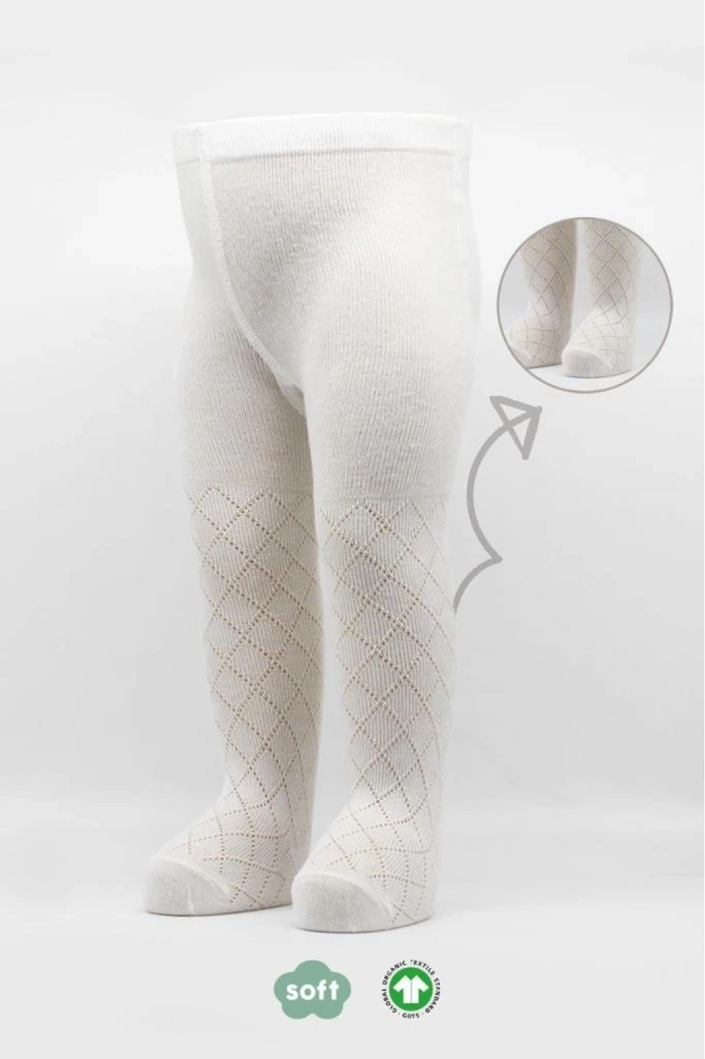 ® Tekli Ekose Kabartma Penye Külotlu Çorap BS50105 Ekru