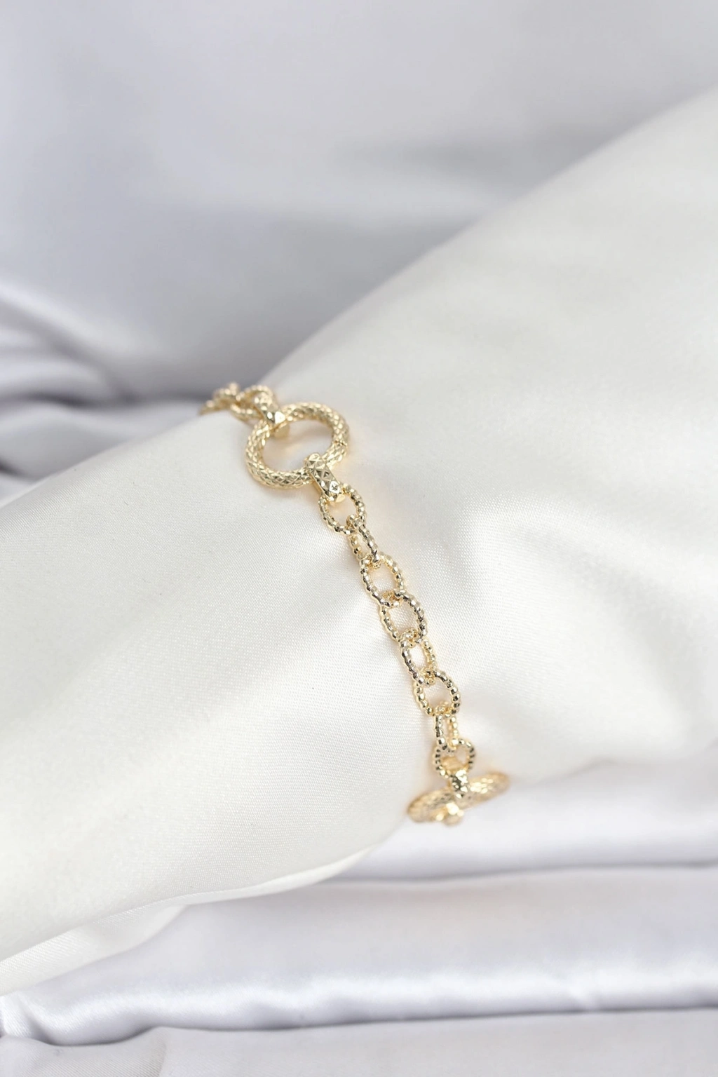 ® CM 14K Gold Renk Lazerli Halka Model Kadın Bileklik