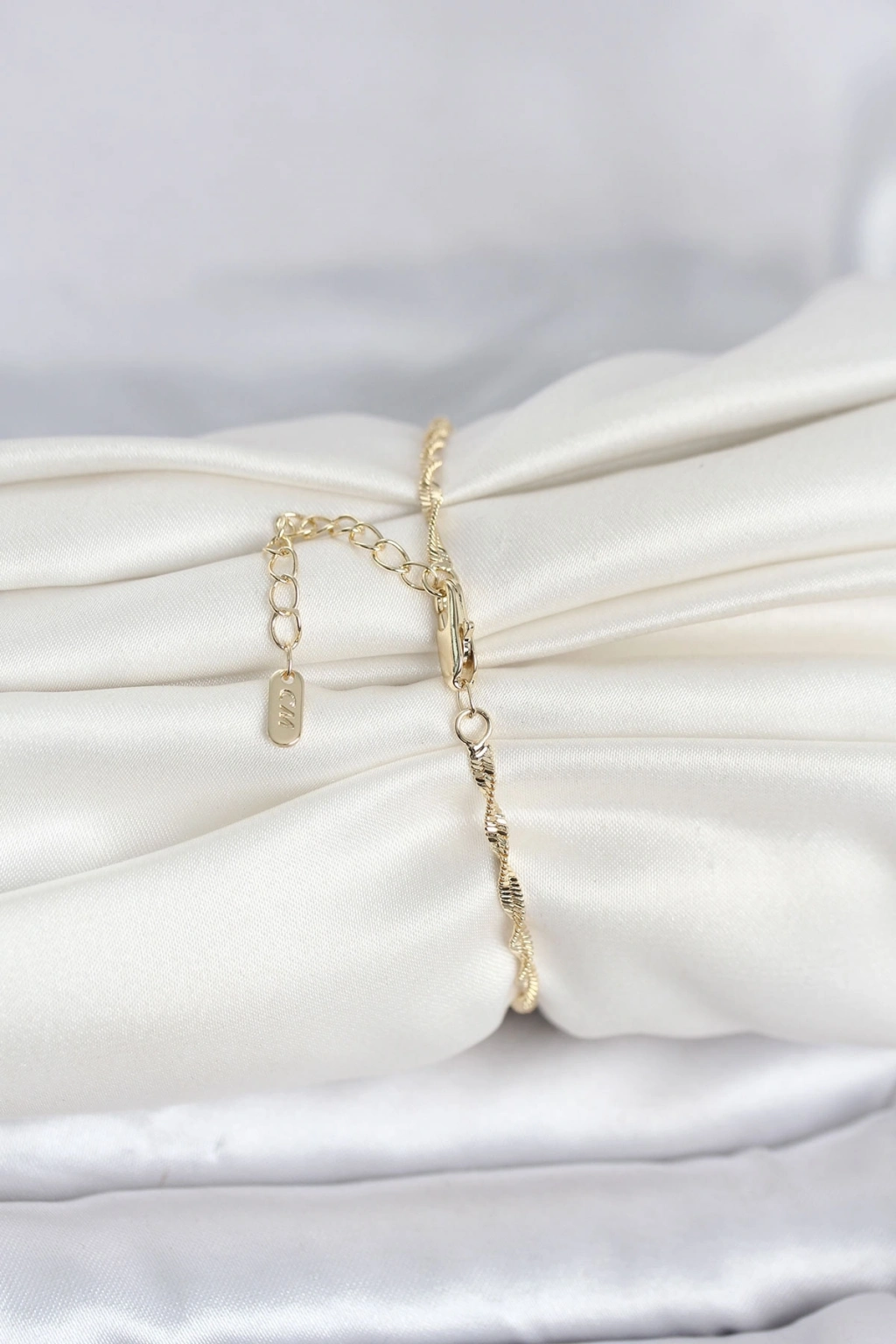 ® CM 14K Gold Renk Yassı Ezme Burgu Model Kadın Bileklik