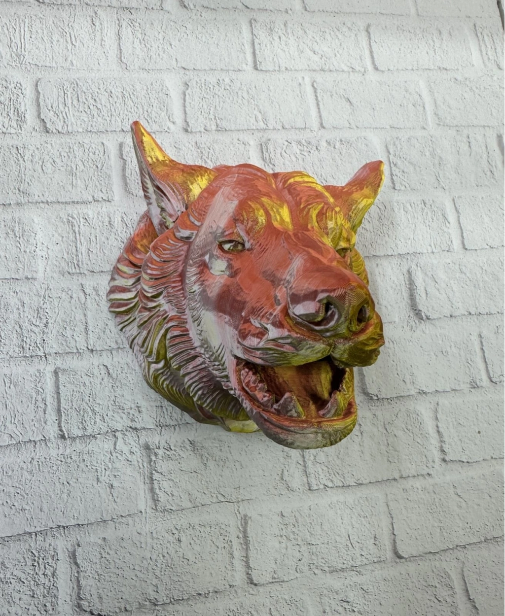® Dekoratif Altın Gold Kurt Duvar Heykeli Asılabilir Hediyelik 25x19 cm