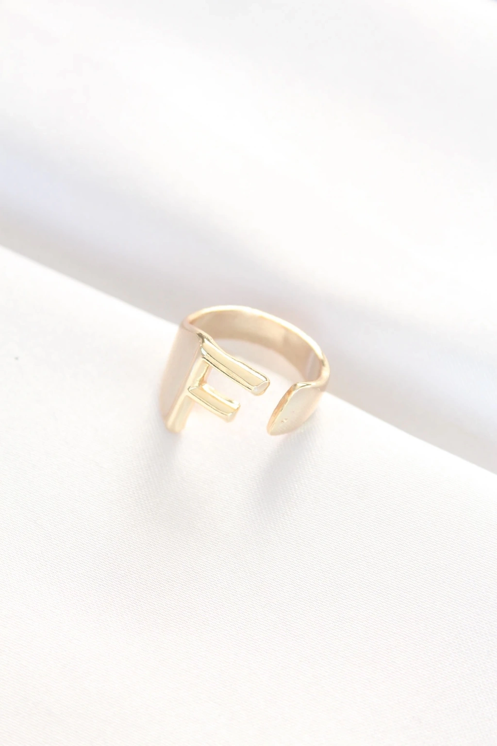 ® F Harfli Altın Renk Ayarlanabilir Yüzük