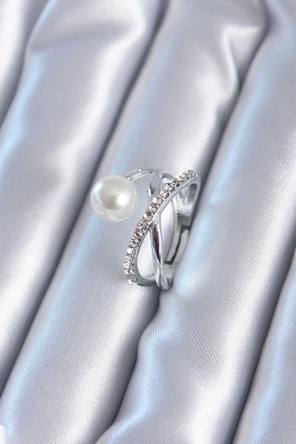 ® Gümüş Renk Zirkon Taşlı İncili Kadın Yüzük