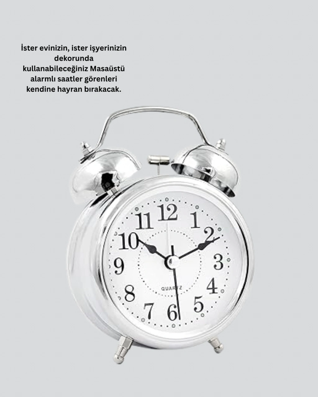 ® Gümüş Renkli Sessiz Işıklı Dekoratif Masa Üstü Çalar Saat Alarmlı