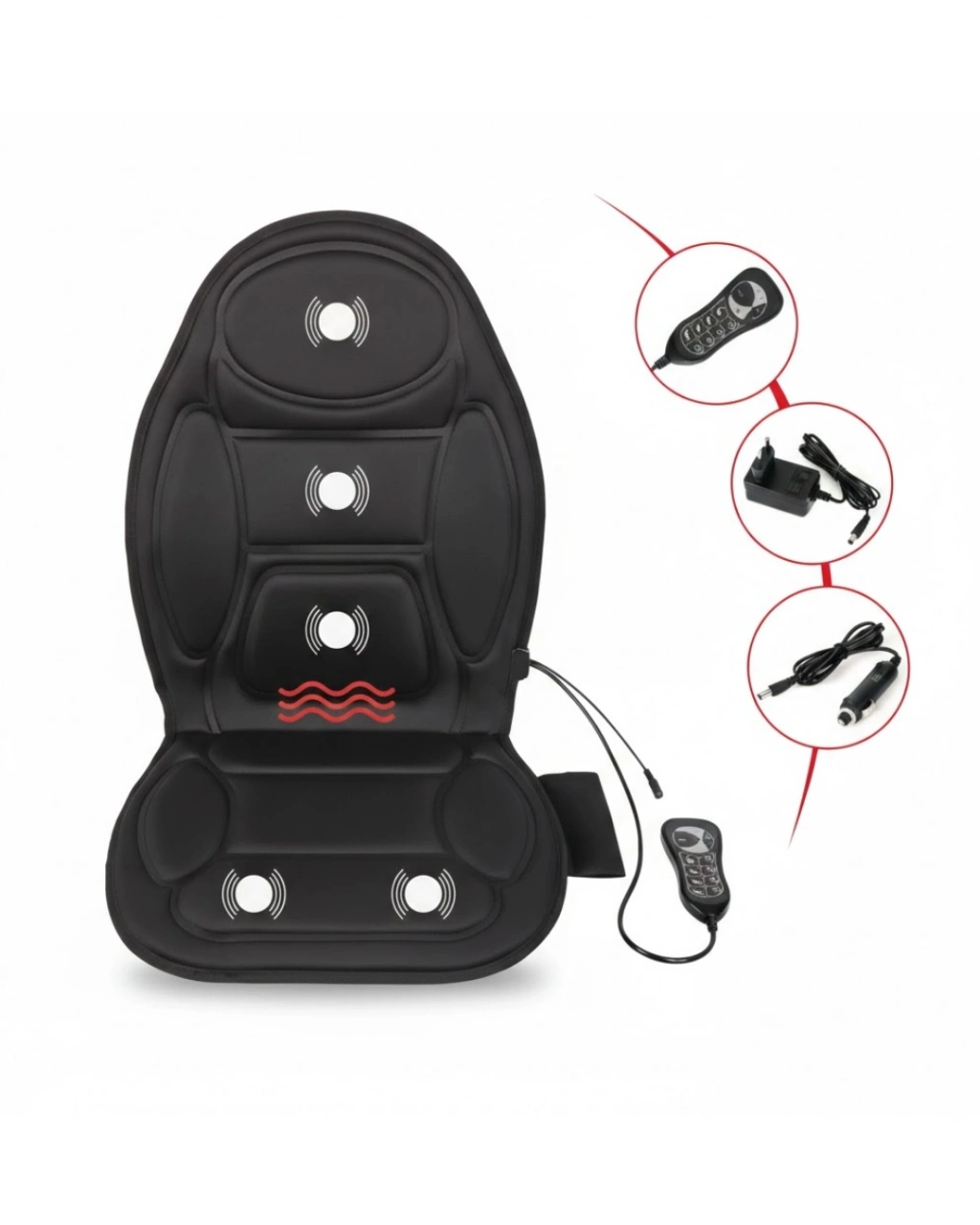 Masaj Koltuk Minderi, evde veya araçta rahat bir masaj deneyimi sunmak üzere tasarlanmıştır. Sırt, bel, boyun ve kalça bölgelerine özel masaj noktaları sayesinde vücudu dengeli şekilde sarar. Titreşimli masaj sistemi, kasları rahatlatmaya yardımcı olurken ısıtmalı fonksiyon konforu artırır.5 masaj modu ve 3 yoğunluk seviyesi, kullanıcıya kişisel tercihlerine uygun ayarlama imkânı tanır. Uzaktan kumandalı kullanım, ürünü son derece pratik hale getirir. Koltuk ve araç koltuğu üzerinde sabit duracak şekilde tasarlanmıştır.Günlük yaşamda rahatlama, dinlenme ve konfor arayanlar için işlevsel bir masaj çözümü sunar.
