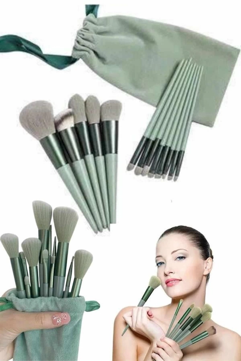 ® Makyaj Fırça Seti Yeşil 13 Parça Fondöten Fırçası Allık Fırçası Far Fırçası