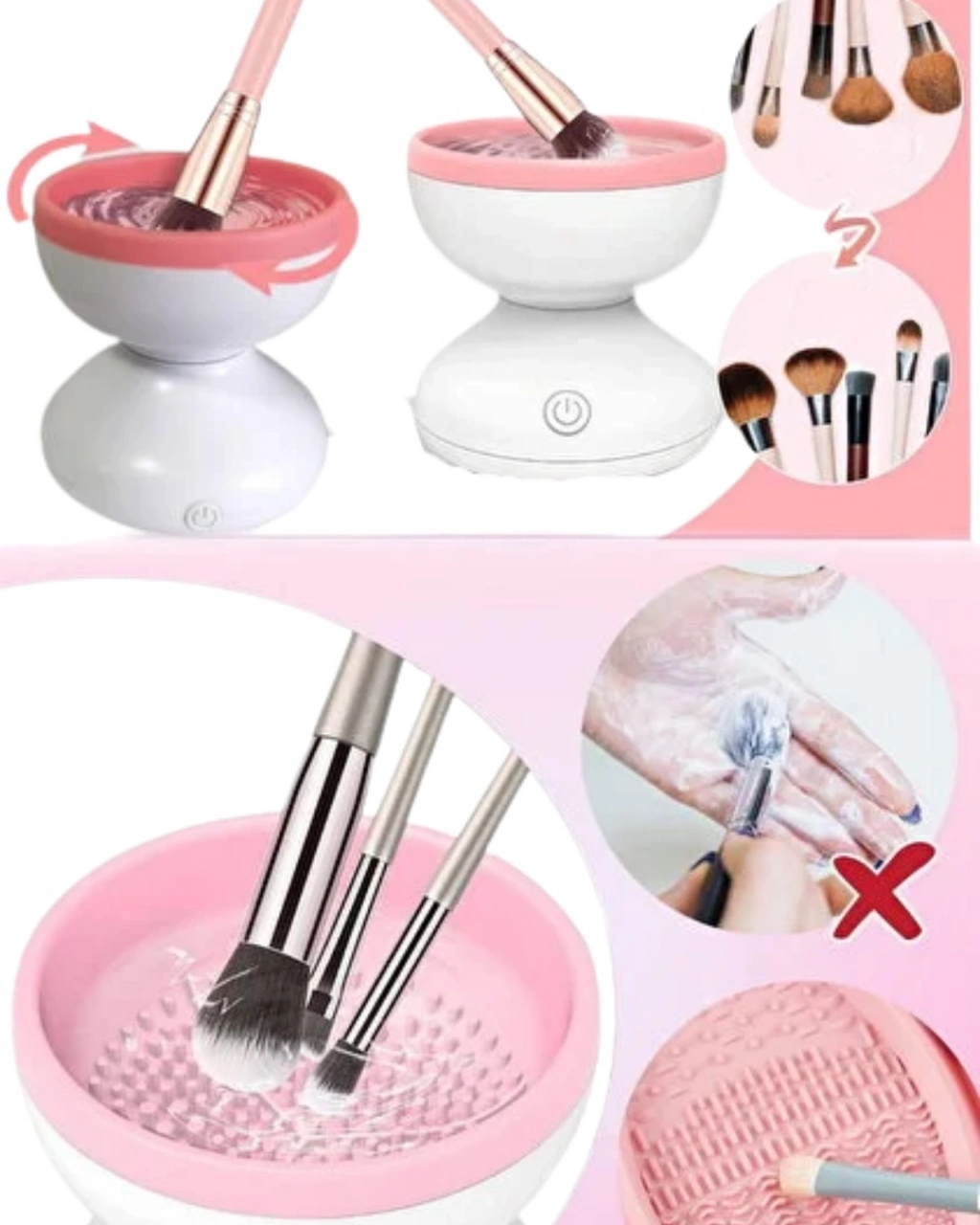 Taşınabilir otomatik makyaj fırçası temizleme makinesi, makyaj fırçalarının hızlı ve etkili şekilde temizlenmesini sağlayan yenilikçi bir güzellik ürünüdür. Günlük makyajda kullanılan fırçalar zamanla kirlenir ve bu durum hem makyaj kalitesini hem de cilt sağlığını olumsuz etkileyebilir. Elektrikli fırça temizleyici, bu sorunu pratik bir şekilde çözmek için tasarlanmıştır.USB ile çalışan yapısı sayesinde cihaz, farklı ortamlarda rahatlıkla kullanılabilir. Powerbank veya bilgisayar gibi kaynaklara bağlanarak çalıştırılabilir. Kompakt tasarımı, ürünü evde kullanımın yanı sıra seyahatler için de uygun hale getirir. Taşınabilir yapısı sayesinde fırçalarınızı her zaman temiz tutabilirsiniz.Silikon yüzeyli iç tasarımı, fırça kıllarına zarar vermeden derinlemesine temizlik sağlar. Elektrikli dönüş mekanizması, makyaj kalıntılarını kısa sürede çözer. Birden fazla fırçanın aynı anda temizlenebilmesi, yoğun kullanımda büyük avantaj sağlar. Hızlı kurutma fonksiyonu, temizlik sonrası fırçaların fazla suyunu alarak kısa sürede kullanıma hazır hale gelmesine yardımcı olur.Tek tuşla çalışabilen kullanıcı dostu tasarımı, ürünü herkes için kolay kullanılabilir hale getirir. Montaj gerektirmeyen yapısı, kullanım sırasında pratiklik sağlar. Düzenli fırça temizliği, daha pürüzsüz makyaj uygulamaları ve daha hijyenik kullanım sunar.Bu elektrikli makyaj fırçası temizleyici, güzellik rutinini kolaylaştırmak isteyen herkes için ideal bir üründür. Hem evde hem de seyahatlerde pratik kullanım sunarak makyaj fırçalarının her zaman temiz ve hazır olmasını sağlar.