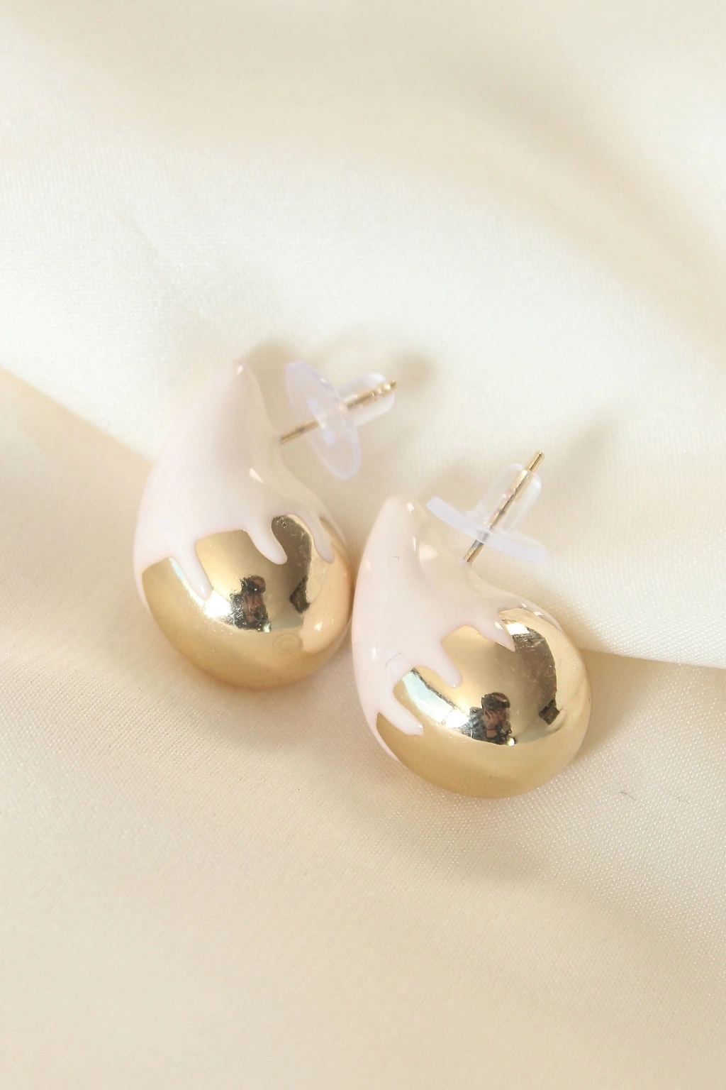 ® Minimal Beyaz Mineli Çift Renk Damla Küpe