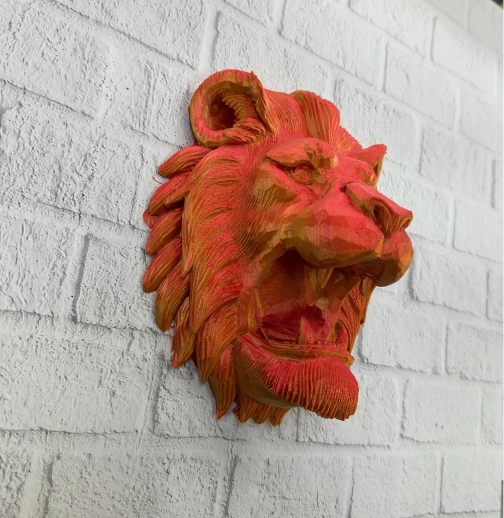 ® Özel Tasarım 3D Aslan Figürü Duvar Süsü Dekoratif Heykel 20x21 cm