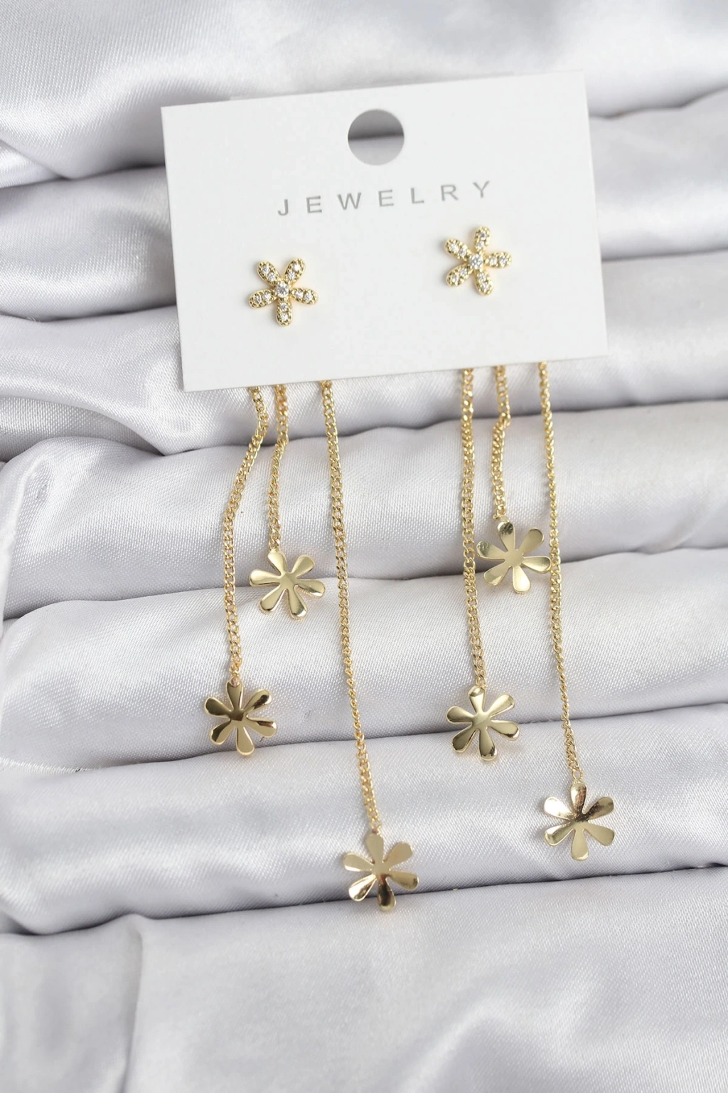 ® Papatya Model Gold Renk Pirinç Sallantılı Kadın Küpe