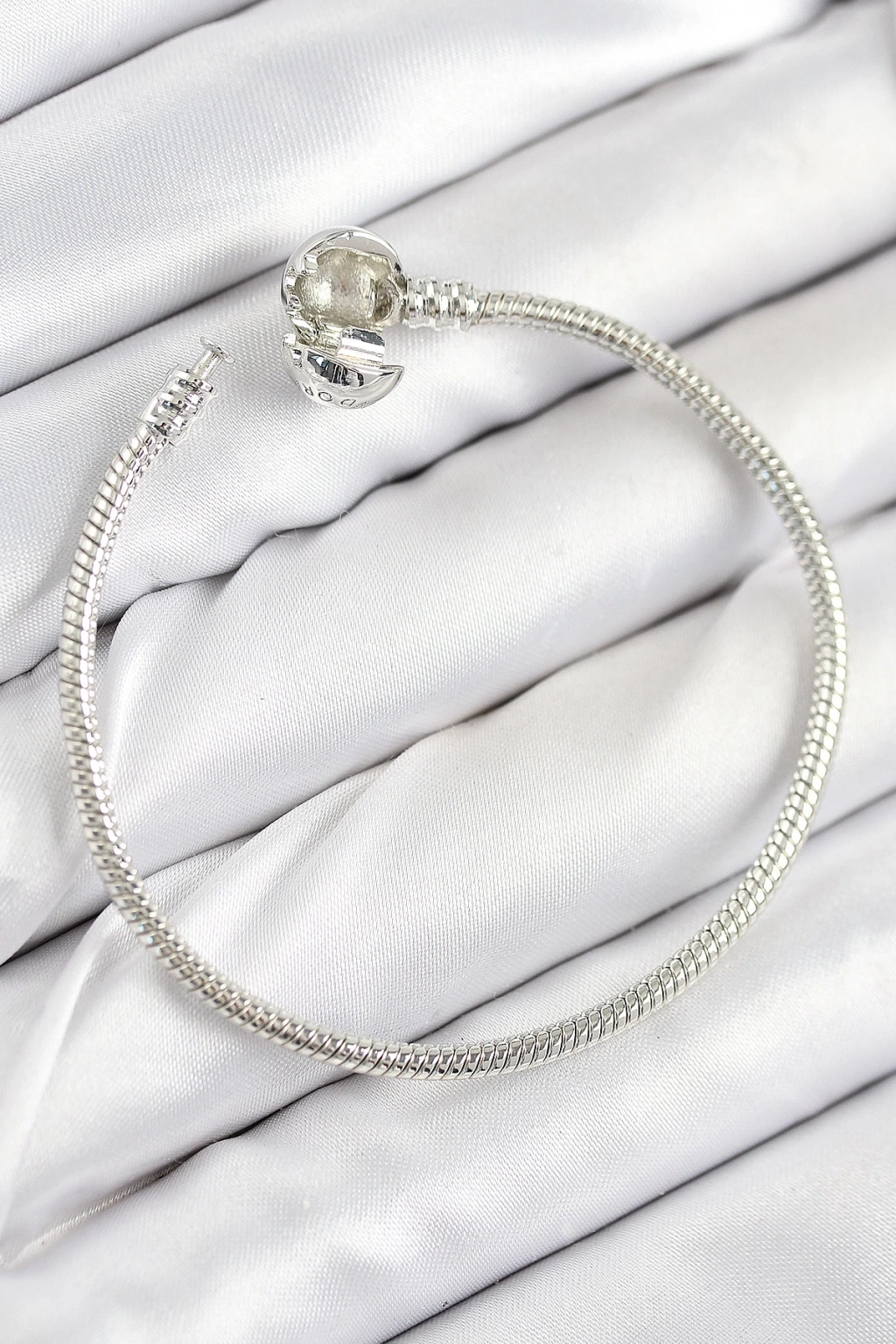 ® Pirinç Charm Topcuk Model Gümüş Renk Kadın Bileklik