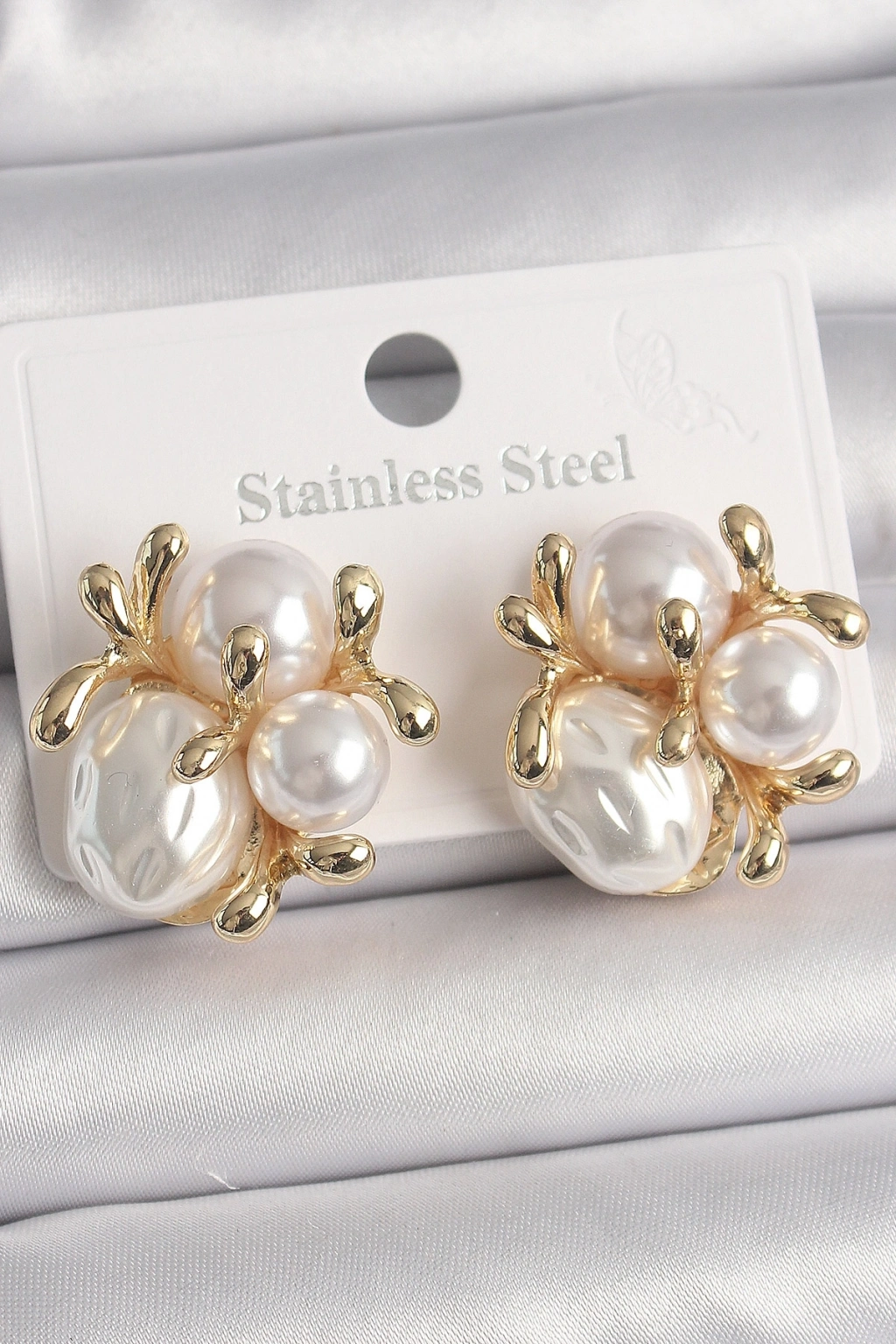 ® Pirinç Gold Renk İnci Tomurcuk Model Kadın Küpe