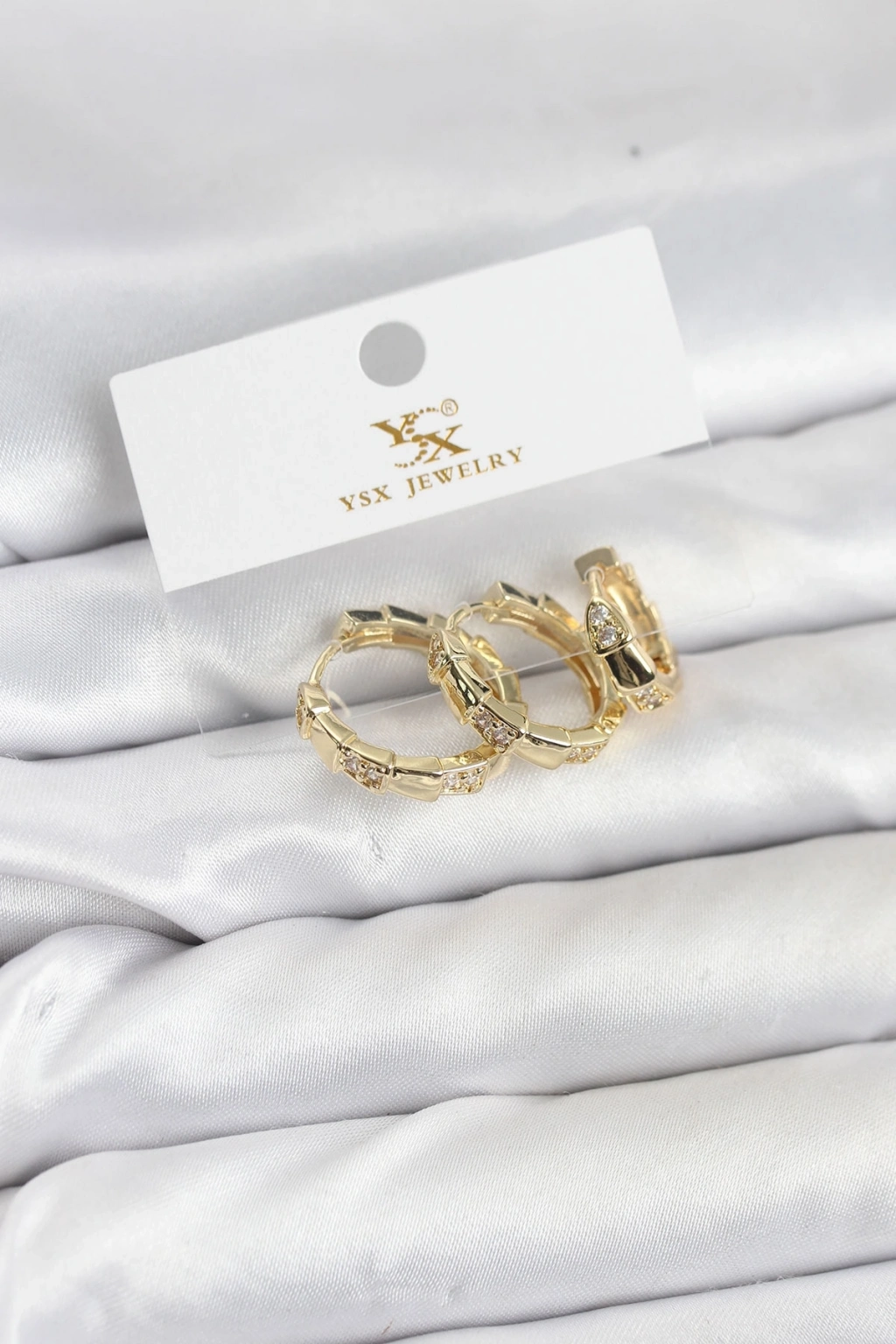 ® Pirinç Gold Renk Zirkon Taşlı Halka Yılan Model YSX Trio Küpe Seti
