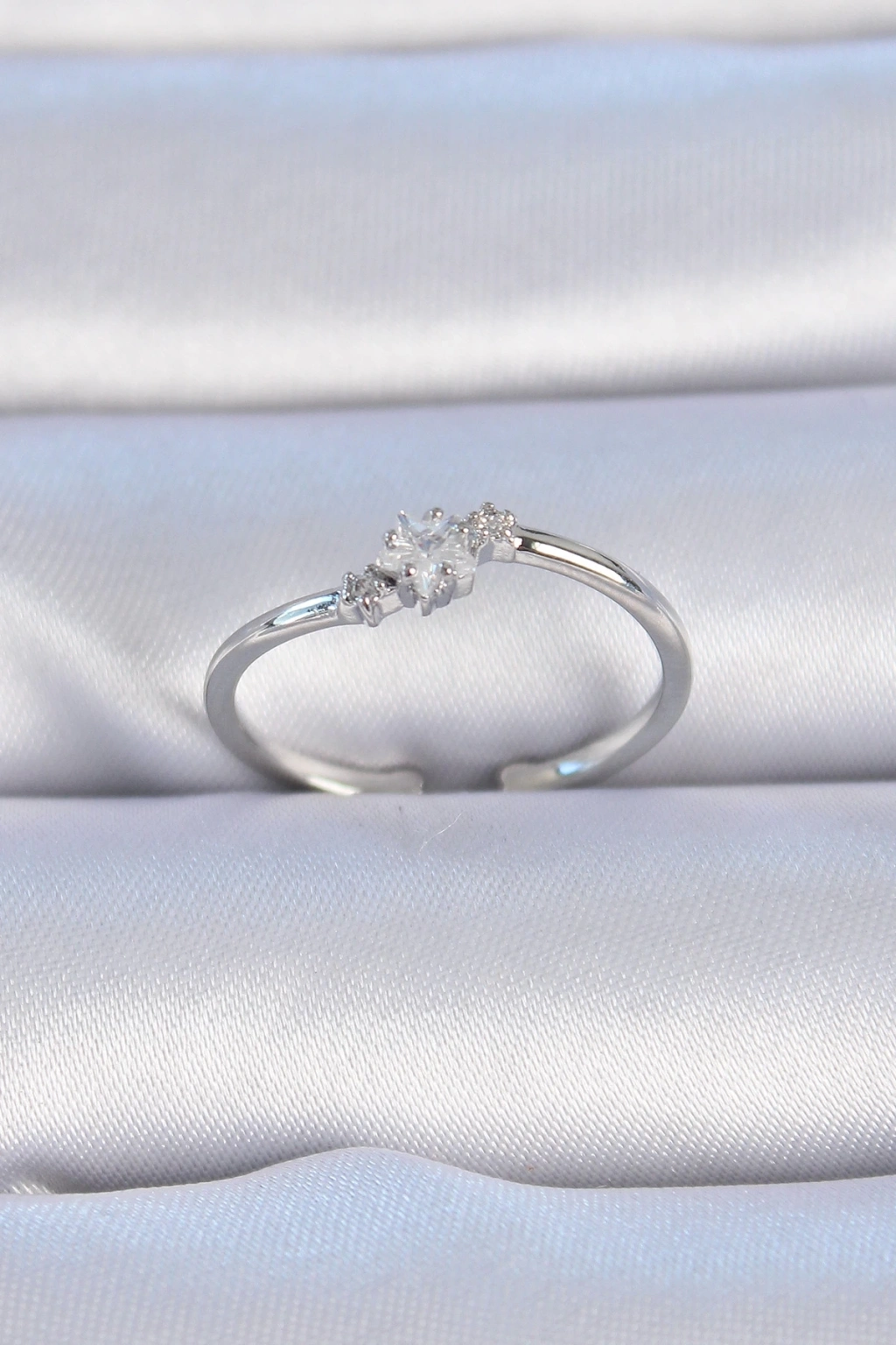 ® Pirinç Gümüş Renk Çiçek Model Zirkon Taş Detay Kadın Yüzük