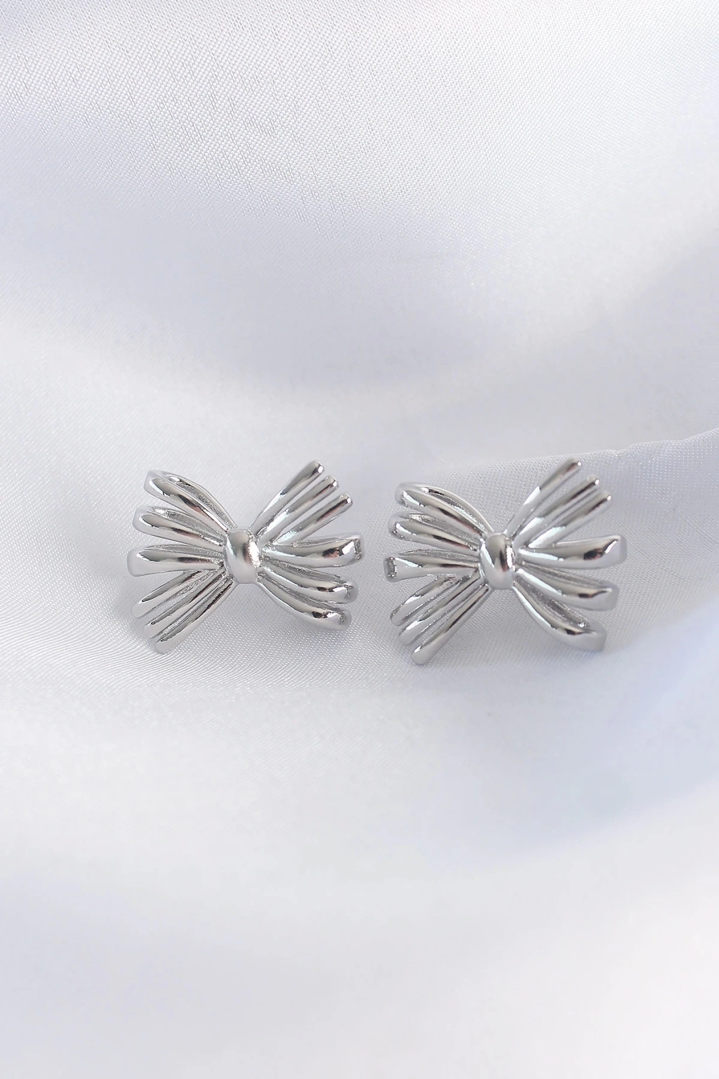 ® Pirinç Gümüş Renk Fiyonk Küpe