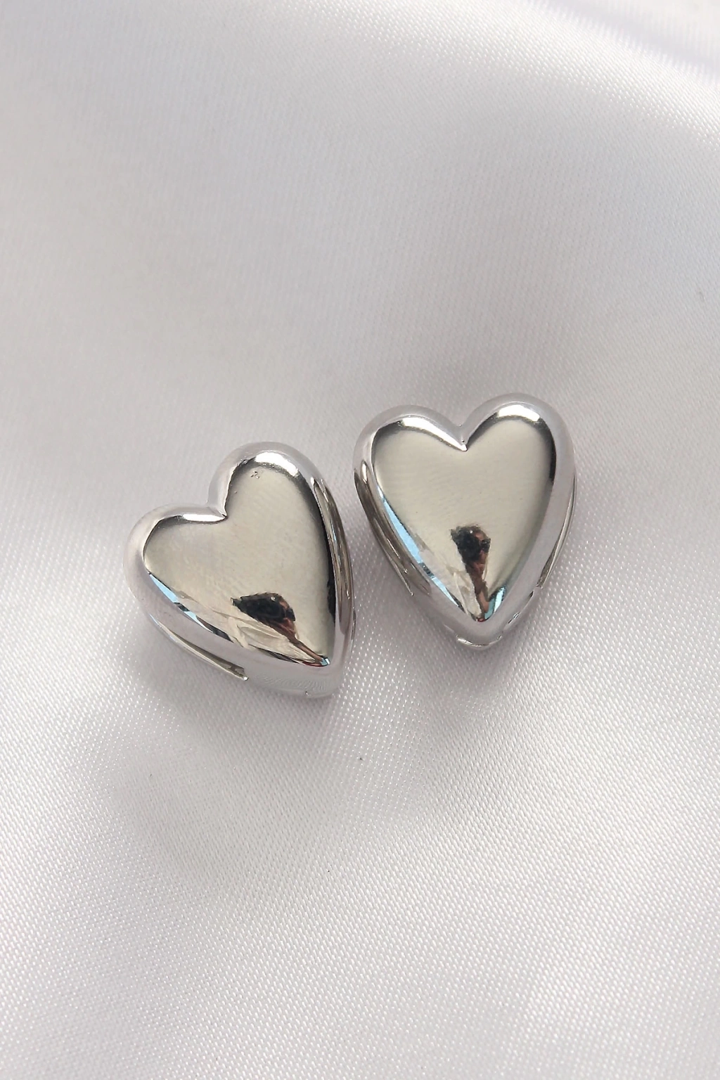 ® Pirinç Gümüş Renk Minimal Bombeli Kalp Küpe