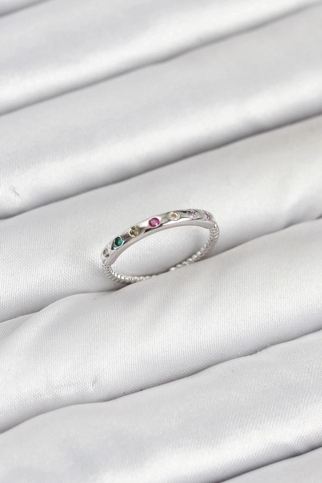 ® Pirinç Gümüş Renk Renkli Zirkon Taşlı Kadın Yüzük